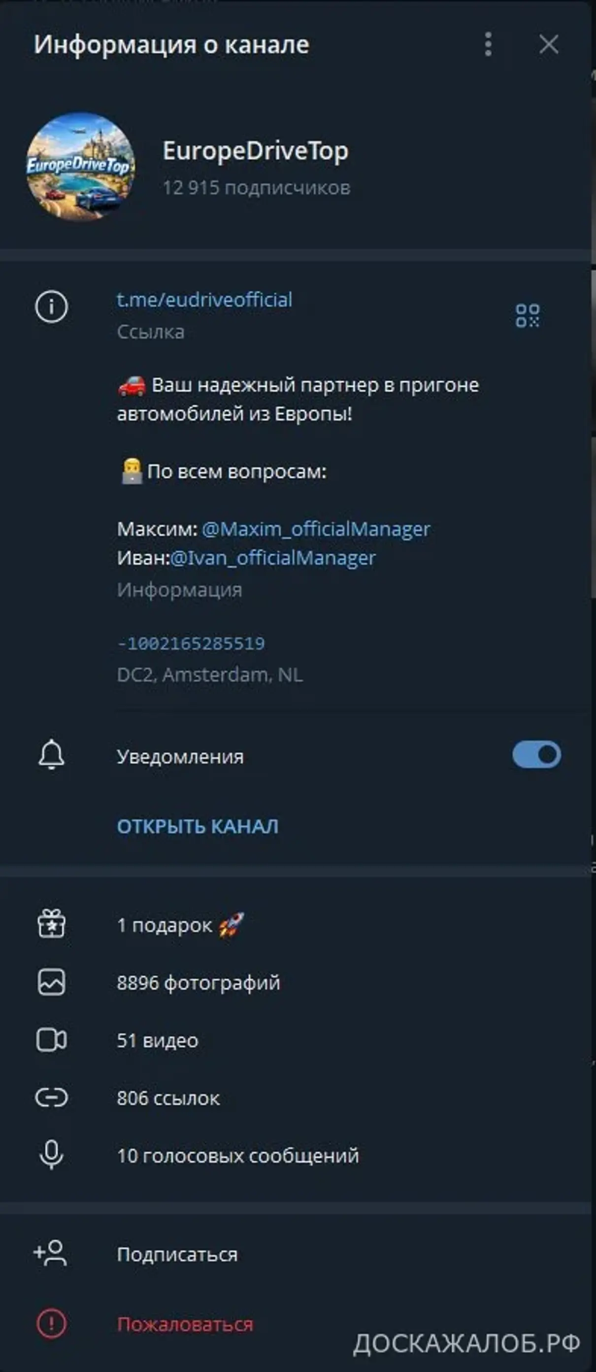 Канал в Telegram — EuropeDriveTop. Адрес в Telegram: t.me/eudriveofficial