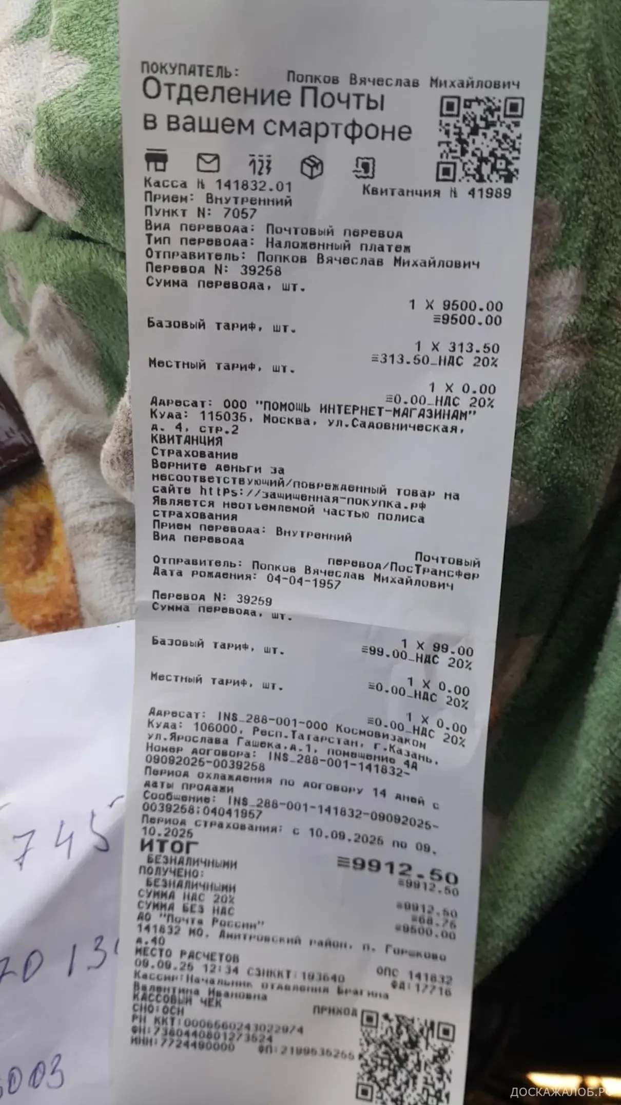 И так же, ПРОШУ: Расторгнуть договор и возвратить уплаченную сумму за товар в размере 9 912 рублей.