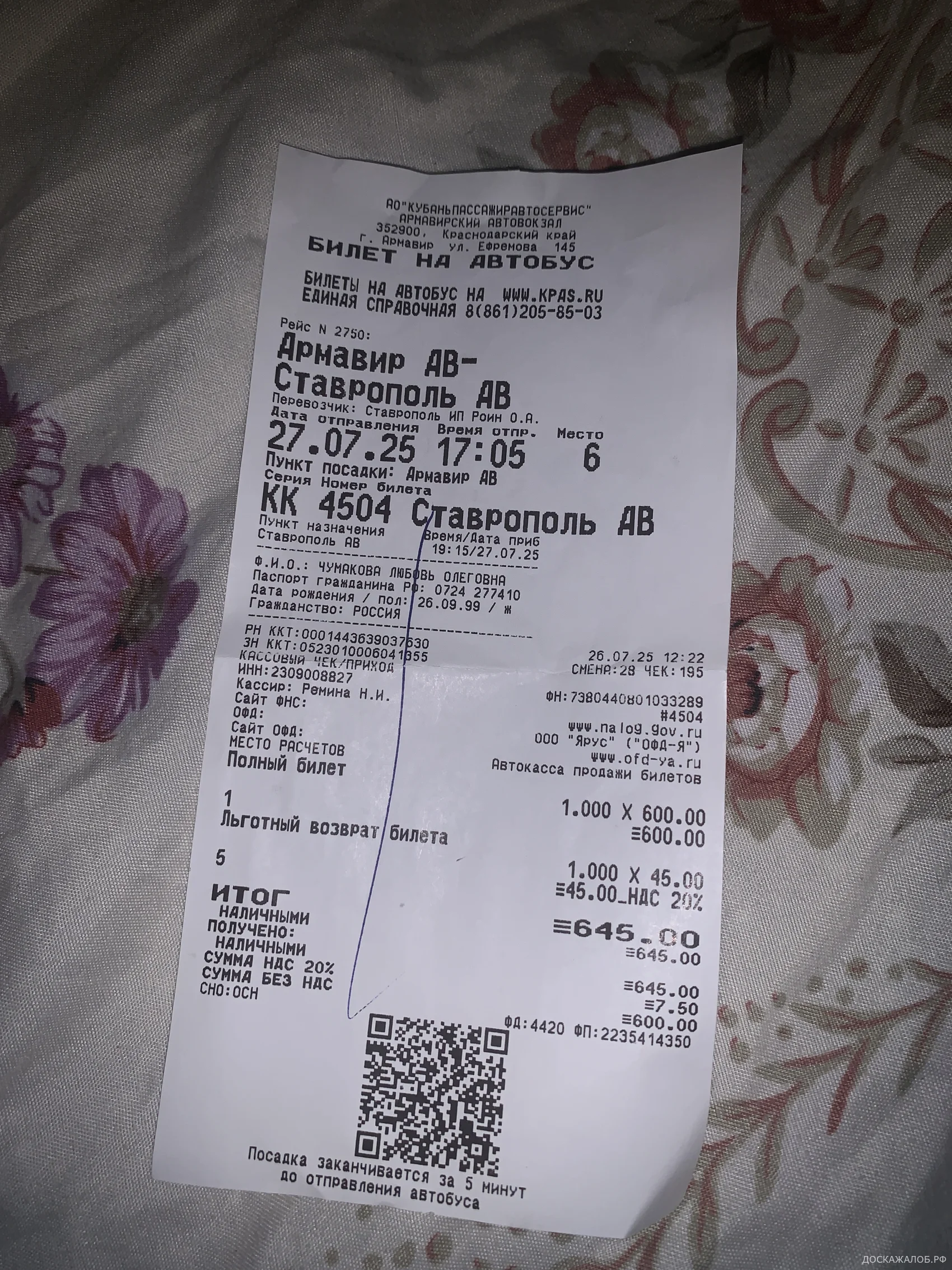 Уже не раз езжу из Армавира в Ставрополь, и каждый раз попадается данный водитель! Не знаю его имени, но в билете указано ИП Роин О.А. Данный водитель подбирает людей на остановках, и они едут стоя, при этом он берет за это оплату наличными!