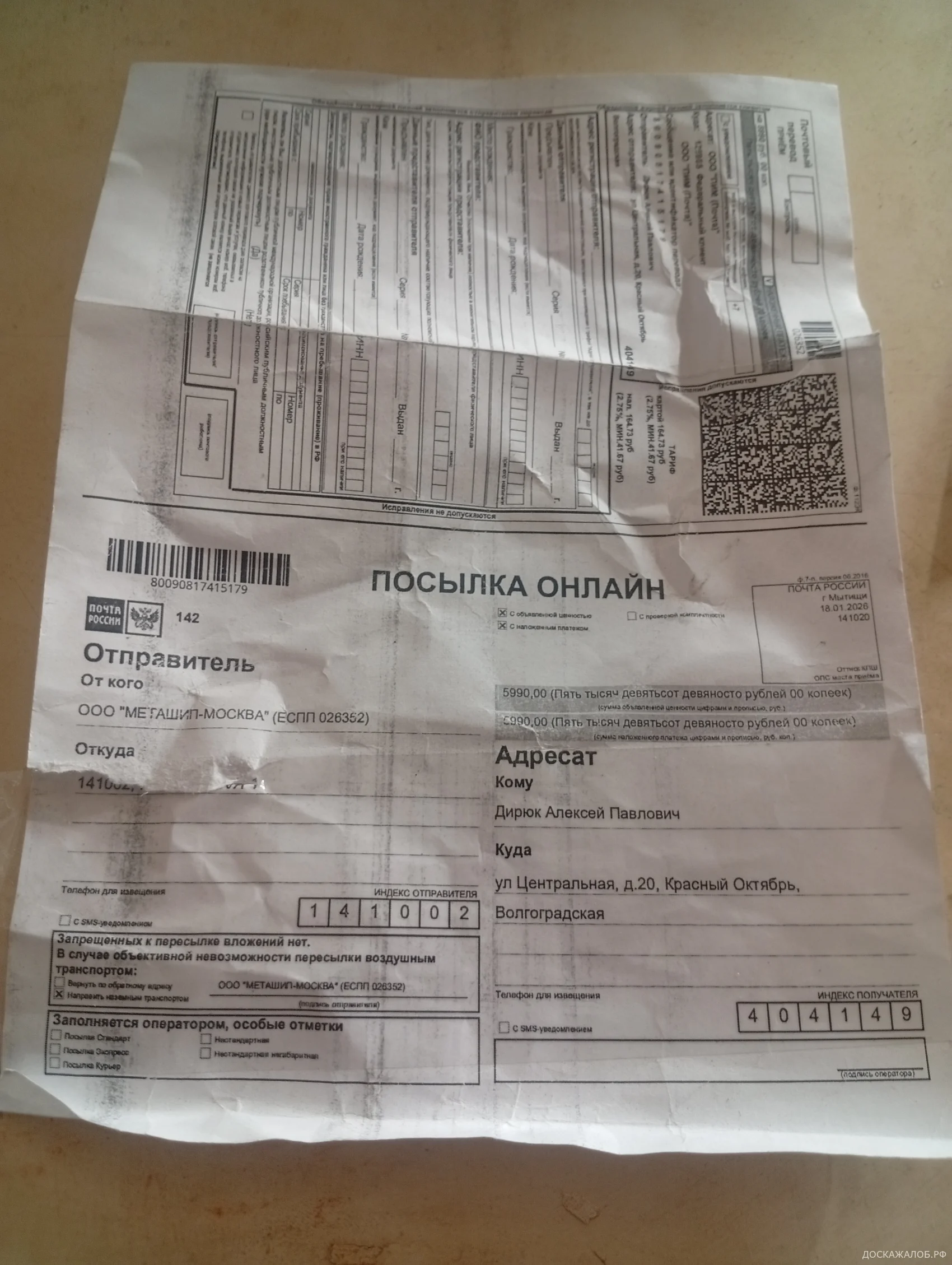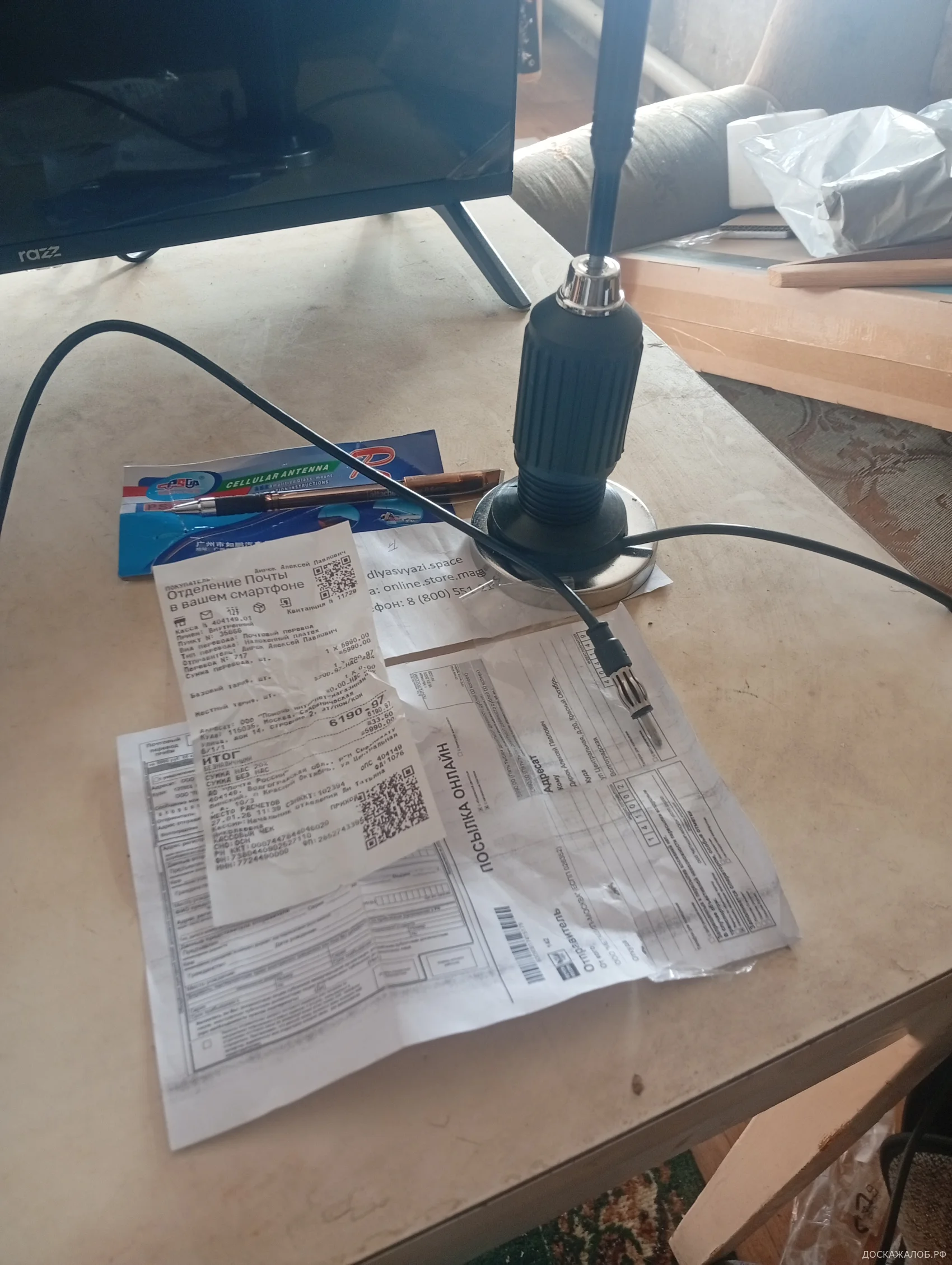 Заказал телевизионную антенну прислали получил антенна для автомобиля, претензия возврат антенны и возврат денежных средств.