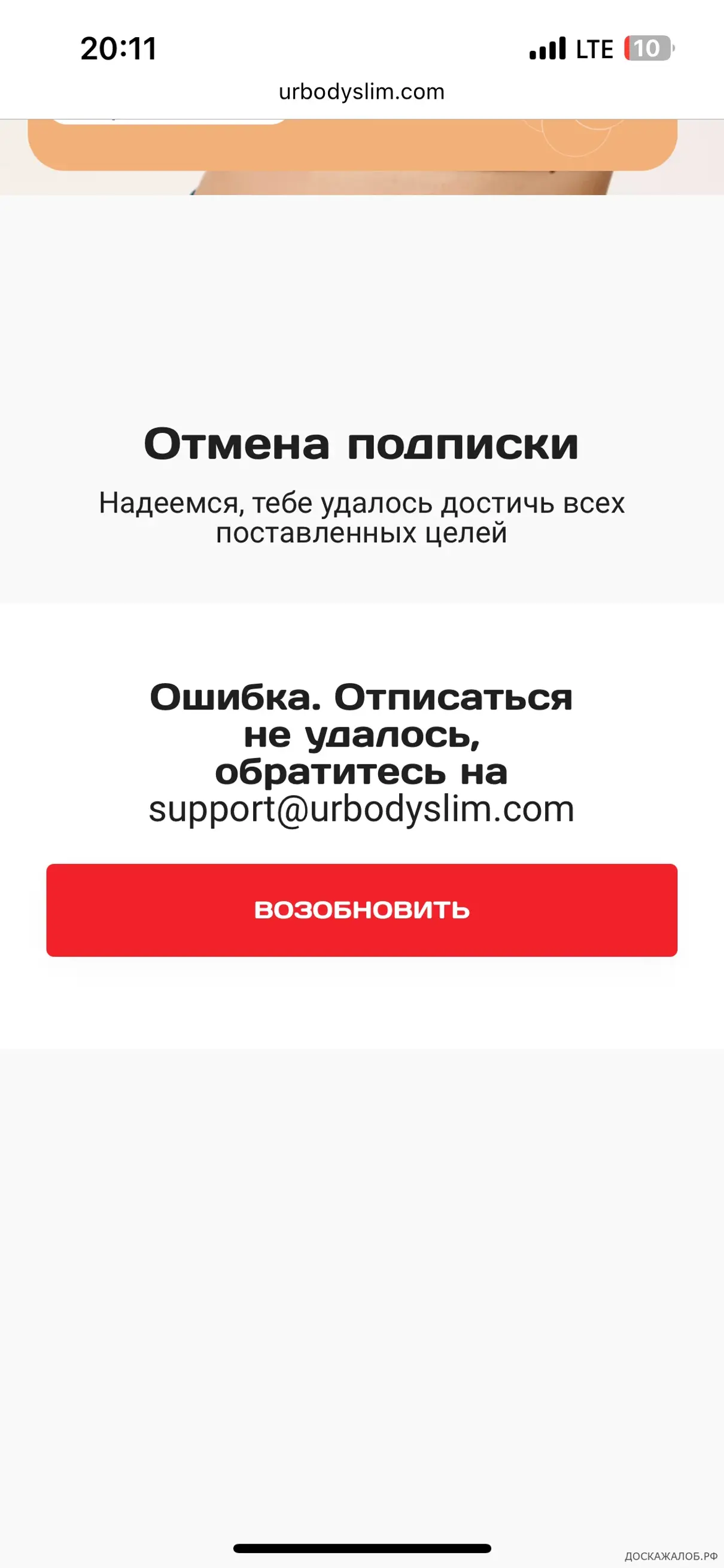 Списали 980 руб. Якобы за подписку urbodyslim, на этот сайт не подписывалась, кроме того и при отписке выдает ошибку. Пробовала писать на почту якобы в поддержку, письмо не доставляется.