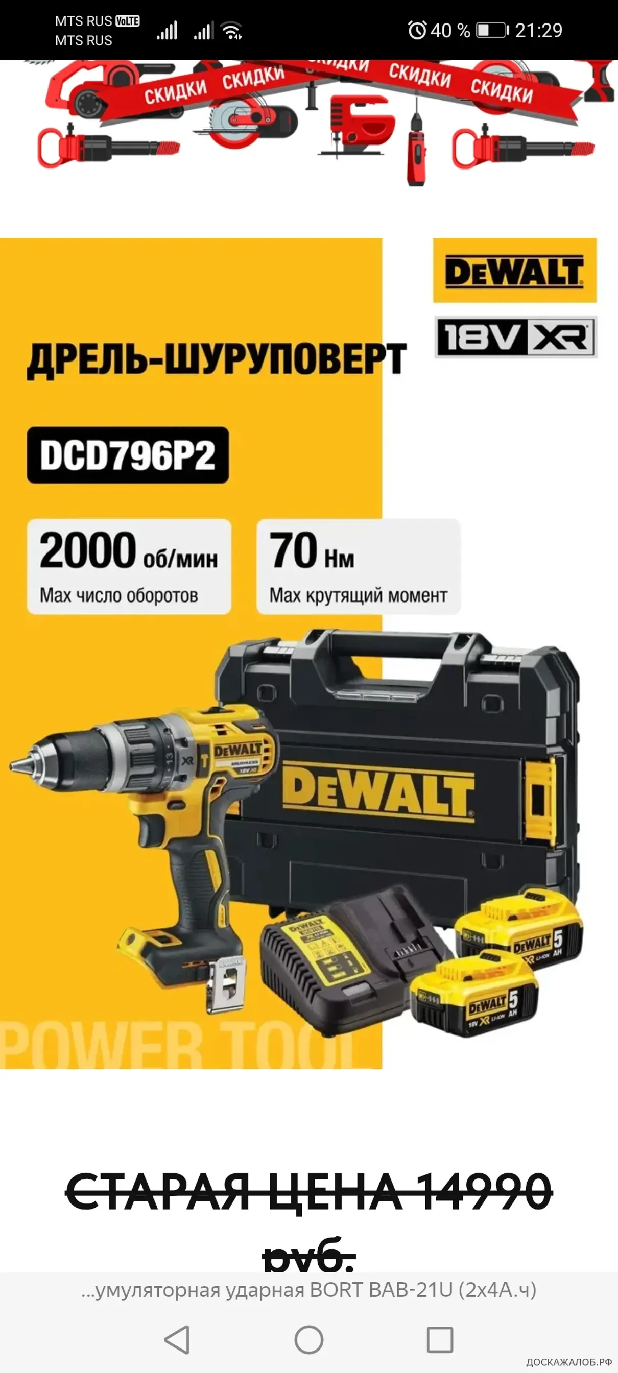 Заказал шуруповерт девольт, получил х Е р знает что, не стоящее и 1000р.как у вас хвотет совести. Фото полученного и фото заказаного прилагаю, ну тут не вооруженым видно.