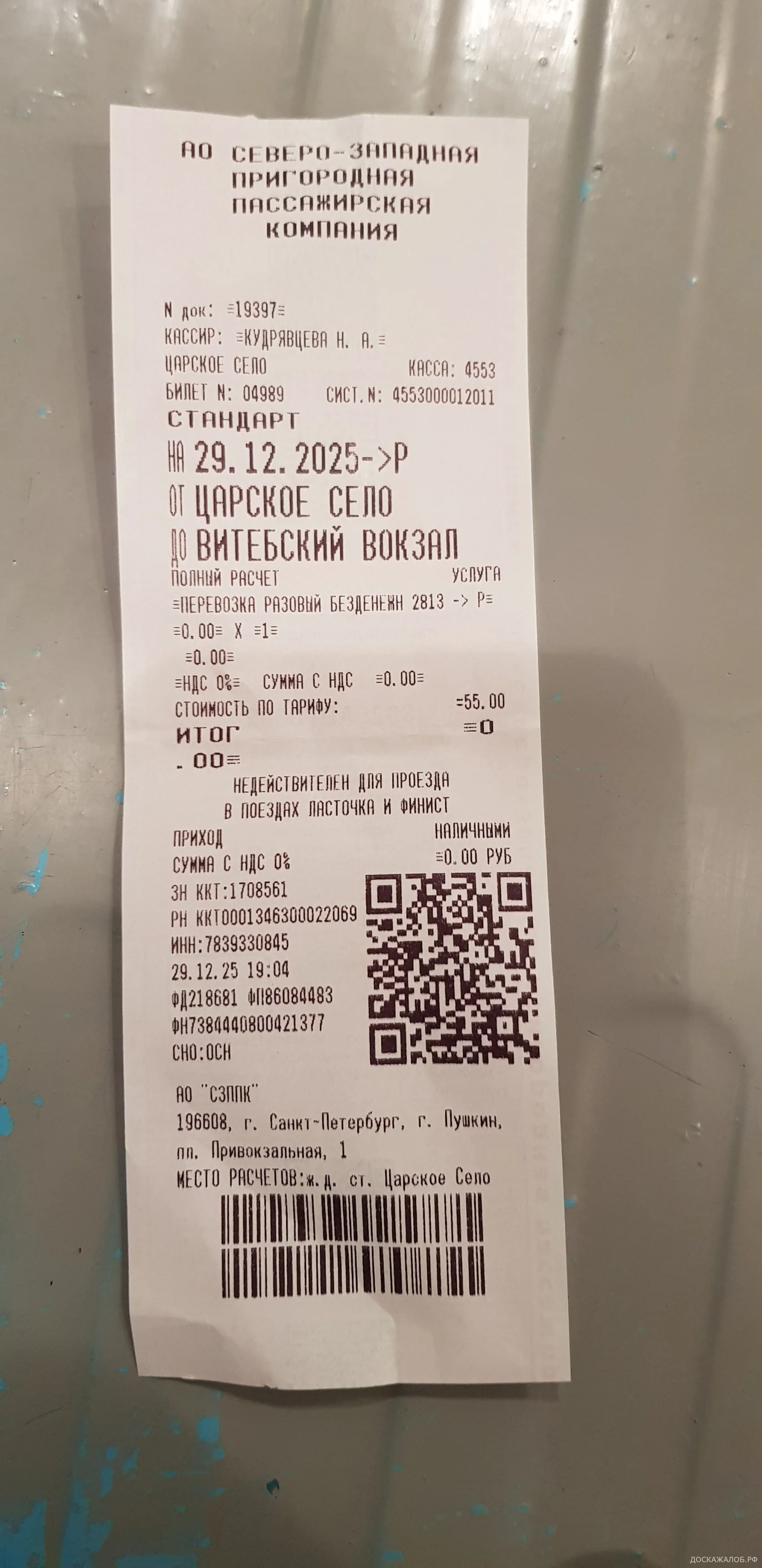 Села в 19:12 на ж/д ст. «Царское Село» в 1-й вагон и замёрзла: вагон не отапливается, со всех щелей дует.