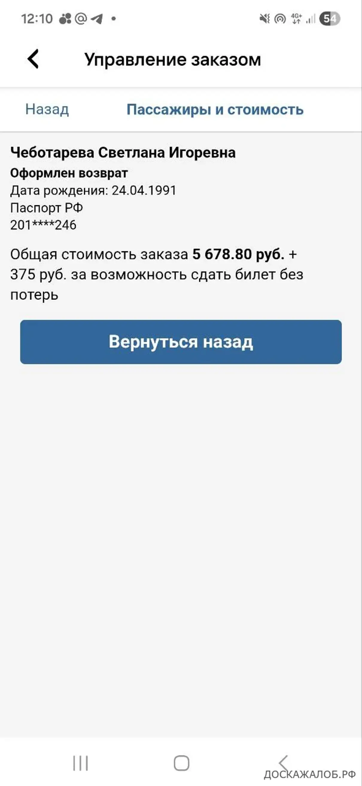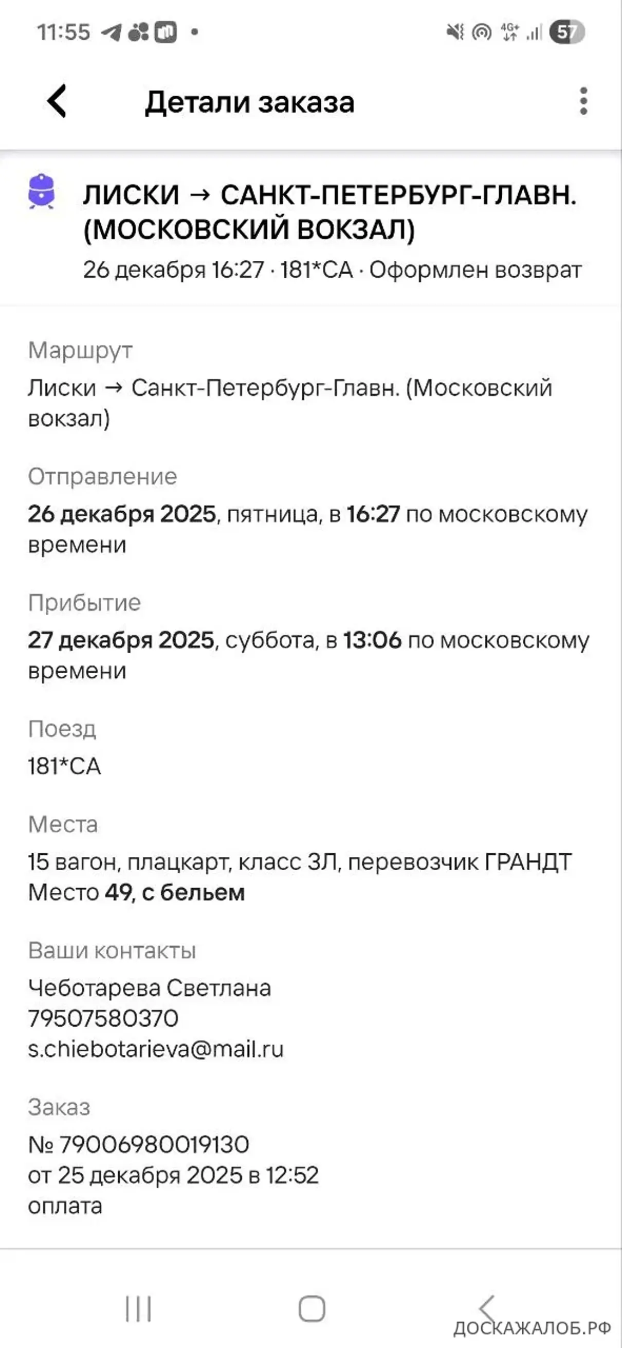 Здравствуйте. Я уже 3 года пользуюсь приложение туту.ру. Первый раз я столкнулась с такой проблемой. Дело в том, что я всегда покупала билет на поезд дальнего следования и практически всегда покупаю услугу в приложении " за возможность сдать билет без потери полноценный суммы билета ". Она стоит 375 руб. Как то я купила билет и через пол часа его сдала. В приложении было сказано что нужно его сделать в жд кассе. Мне благополучно сделали возврат и сразу вернули деньги. Но практически случилась похожая ситуация, но намного проблематичней 25.12.25 г. Я по ошибке купила билет и решили его вернуть. В приложении мне указали что возврат билета мне надо было сделать снова через жд кассу. Я так и сделала. Обратилась в кассу и мне сообщили что притензию будут рассматривать месяц. Это что-то новое в моей практике с покупкой билет. Было как то сомнительно озвучено. Я находилась в Воронежской области, города Лиски. В жд кассе женщина мне утверждала что якобы поезда которые идут с юга делается возврат другой суммы и надо было покупать билет через приложение " ржд пассажирам " .и тогда сумма возврата была бы другой. Общая сумма билета составляла 5678 руб. 80 коп. + услуга возврата билета 375 руб. В кассе мне указала что возврат составляет 4250 руб. У меня вопрос был зачем тогда платить услугу возврата билета и получать возврат на другую сумму. Кассир мне по факту ничего так и не сказала. Прошло уже больше месяца. В чате поддержке приложение " туту.ру "мне написали чтобы я написала притензию и указали индекс и адрес . 115088 , Москва а/я 145. Ситуация очень неприятная и мне обидно что я должна добиваться своих денег. Обычно возврат денежных средств происходит в короткие сроки. Конечно бывают исключение. Это ситуация мне не понятна. Прошу принять меры!