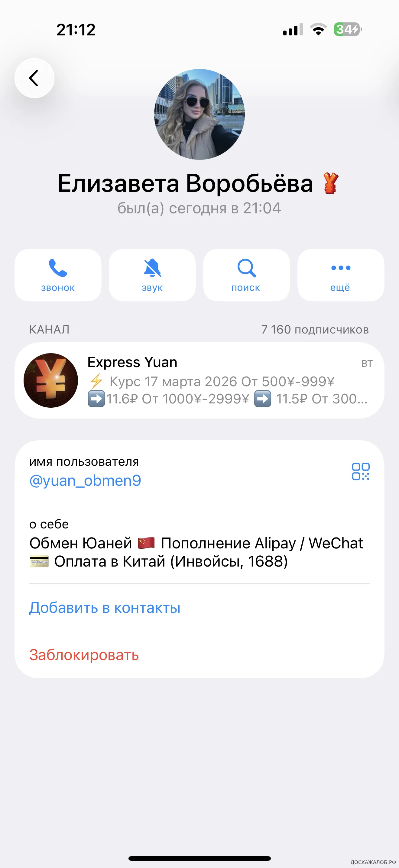 Жалоба / отзыв Мошенник обманул на юани : @yuan_obmen9 Елизавета Воробьева Мошенник перевел ему деньги а он меня обманул на 20000