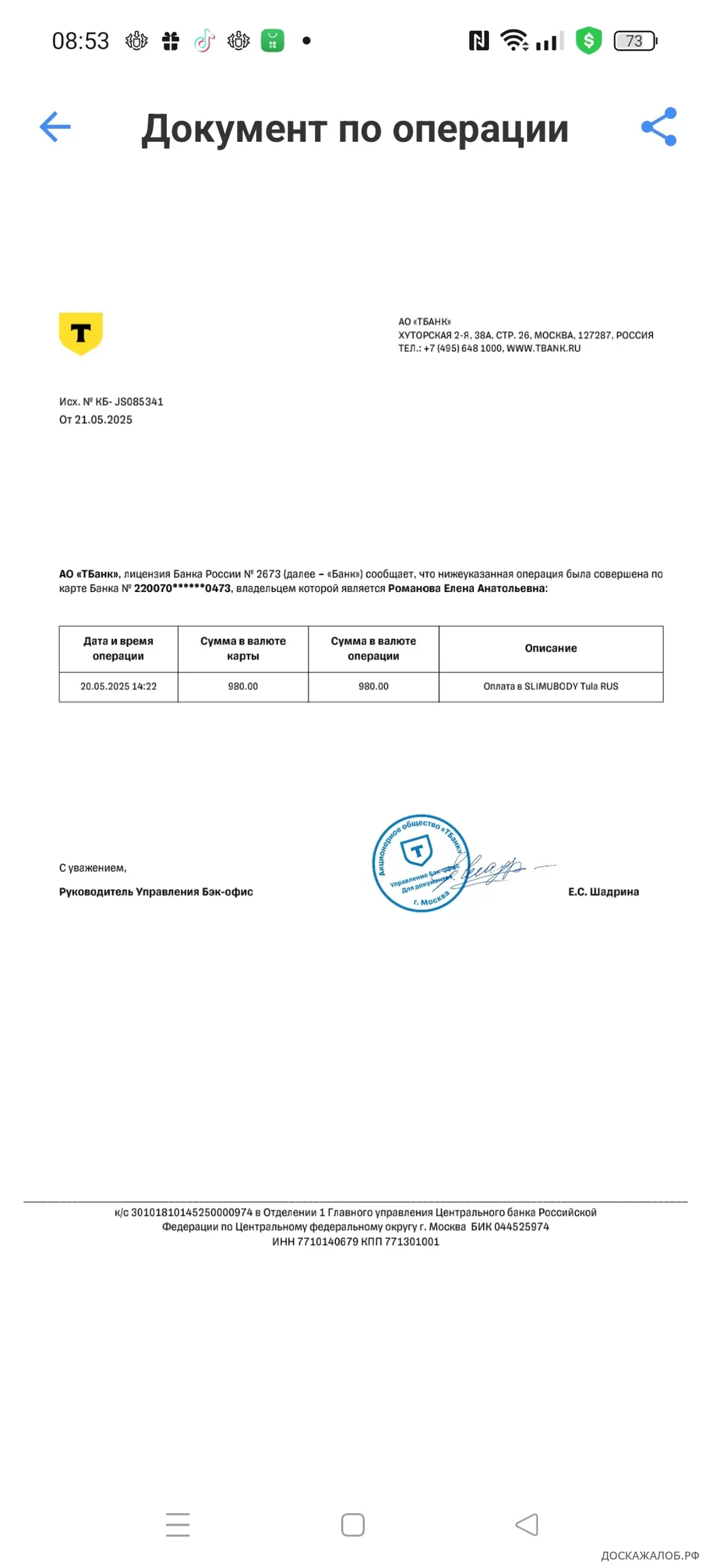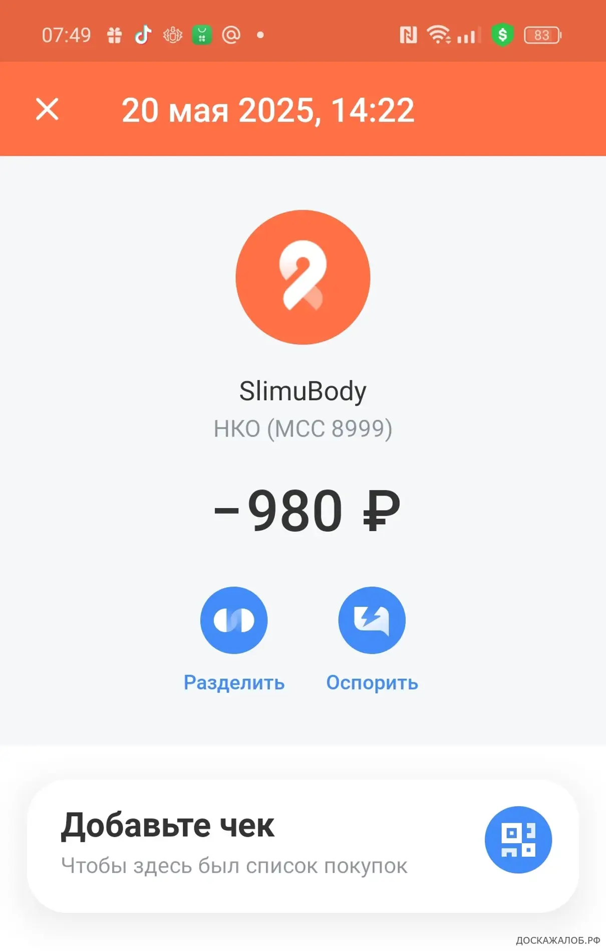 С моего счета без моего ведома и согласия списали 980 рублей. Ранее я никогда не заходила на этот сайт и нигде не оставляла реквизиты карты. Связаться с администрацией данного сайта невозможно. Банк не может оспорить эту операцию.