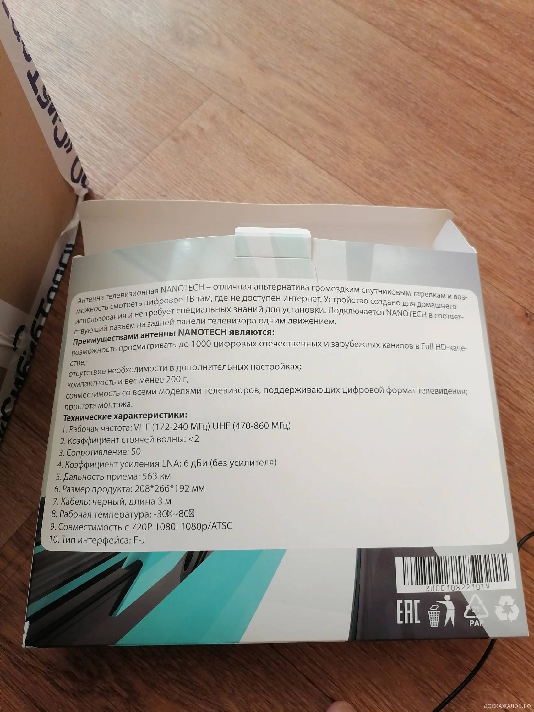 Я, Танеев Андрей Шавкатович, проживаю г. Минусинск Красноярского края. По вашей рекламе про комнатную антенны Nanotech заказал у вас 2 антенны на сумму 11500 т.р. По телефонном разговору меня уверяли, что антенны действительно работают и ловят более 300 каналов, вся сервисная документация и гарантийное обязательства будут. В итоге, по почте пришли 2 одинаковые антены без какой либо документации. Как оказалось не работают в смысле вообще! Это просто две красивые пластмаски с проводом! Зачем так обманывать людей? Прошу вернуть мне потраченные деньги в кротчайший срок. Или я буду вынужден обратиться в МВД, для решения вопроса о привлечении Вас к уголовной ответственность по ст.159УК РФ. Спасибо.