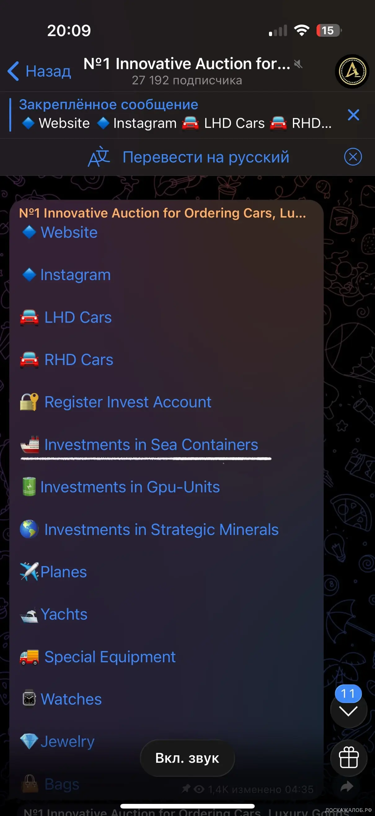 Канал в телеграмме: https://t.me/au1ction