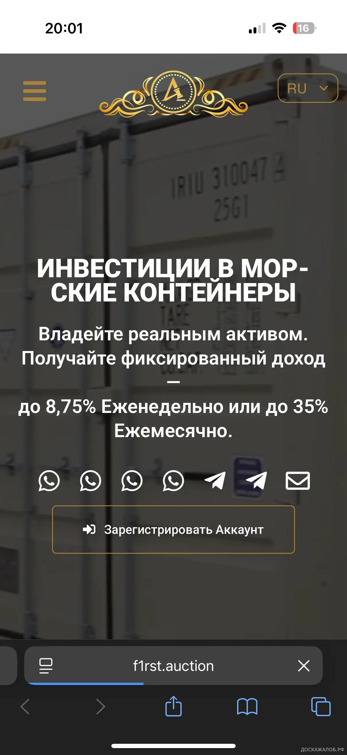 Инвестировал в морские контейнеры. Заключили договор, прислали фото контейнера, сертификат. Всё красиво и якобы официально, получил одну выплату а дальше в черный список типо за оскорбление менеджера. Есть ими созданных много сайтов с положительными отзывами. Много контактов. Будете обращаться, передайте привет менеджеру Изабелле.