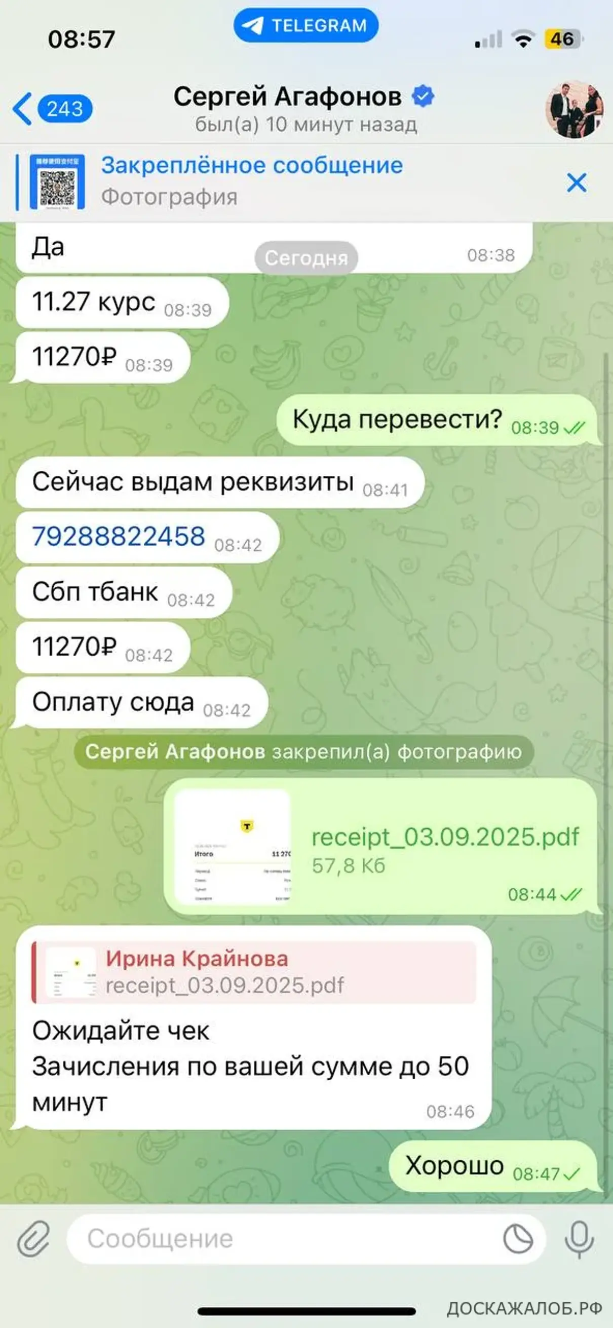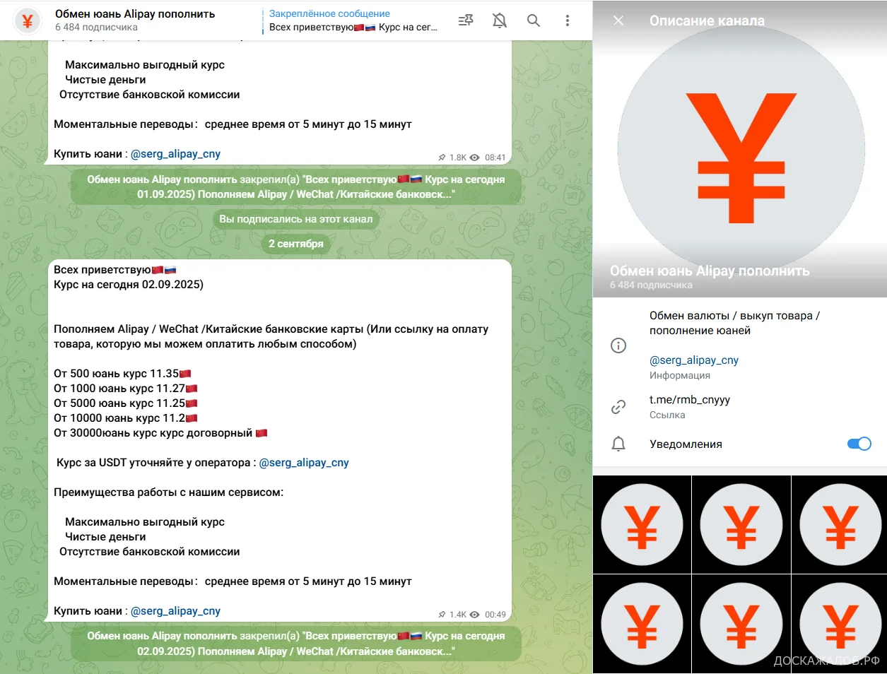 Ввела в поисковике "Обмен юаней" (я покупаю товар из Китая), выходит паблик под названием "Обмен юань Alipay пополнить", беседую с @serg_alipay_cny обычная переписка, он скидывает номер куда перевести деньги, хотела купить 1000ю, отправляю ему чек.