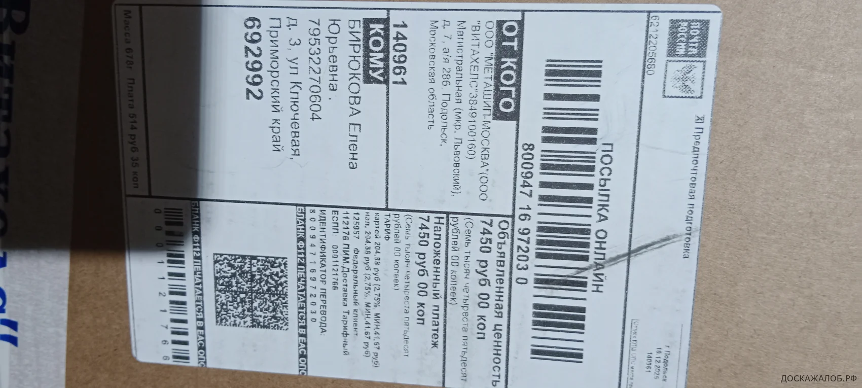 Страна: Россия Область: Московская область Город: Подольск Индекс: 140961