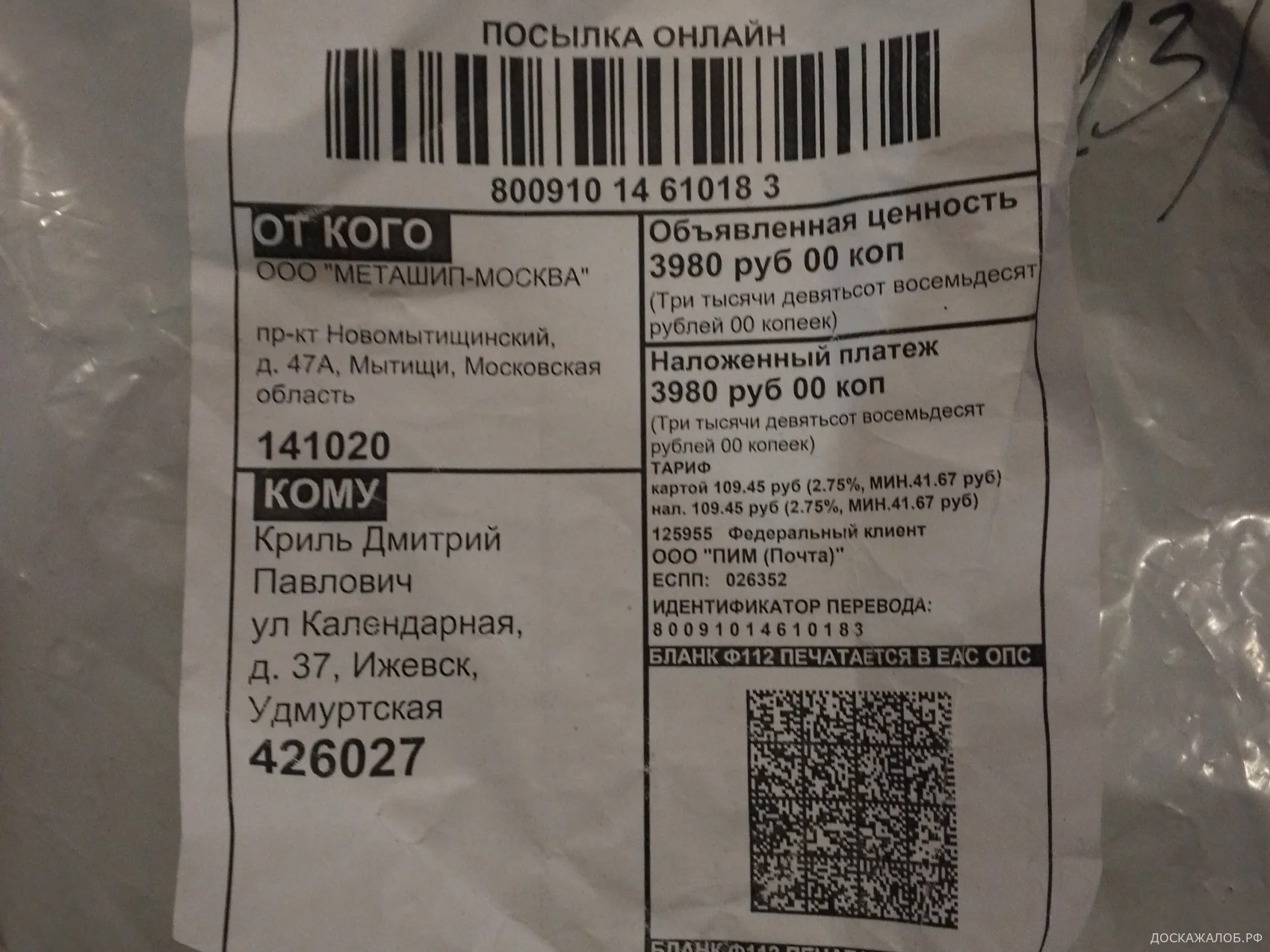 Доскажалоб.рф » Интернет » Интернет магазины » Жалоба / отзыв: ООО Меташип-Москва пр-кт Новомытищенский, д. 47А, Мытищи, Московская область - Подмена товара
