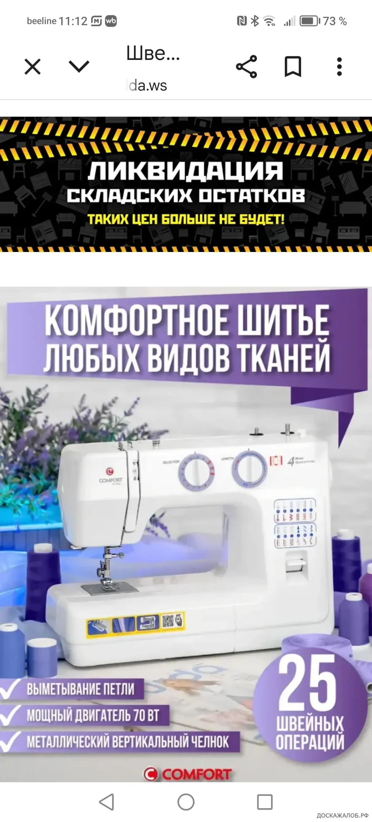 Купила швейную машинку. На рекламе цена одной машины, а рекламируют совершенно другую по качеству и наполнению.