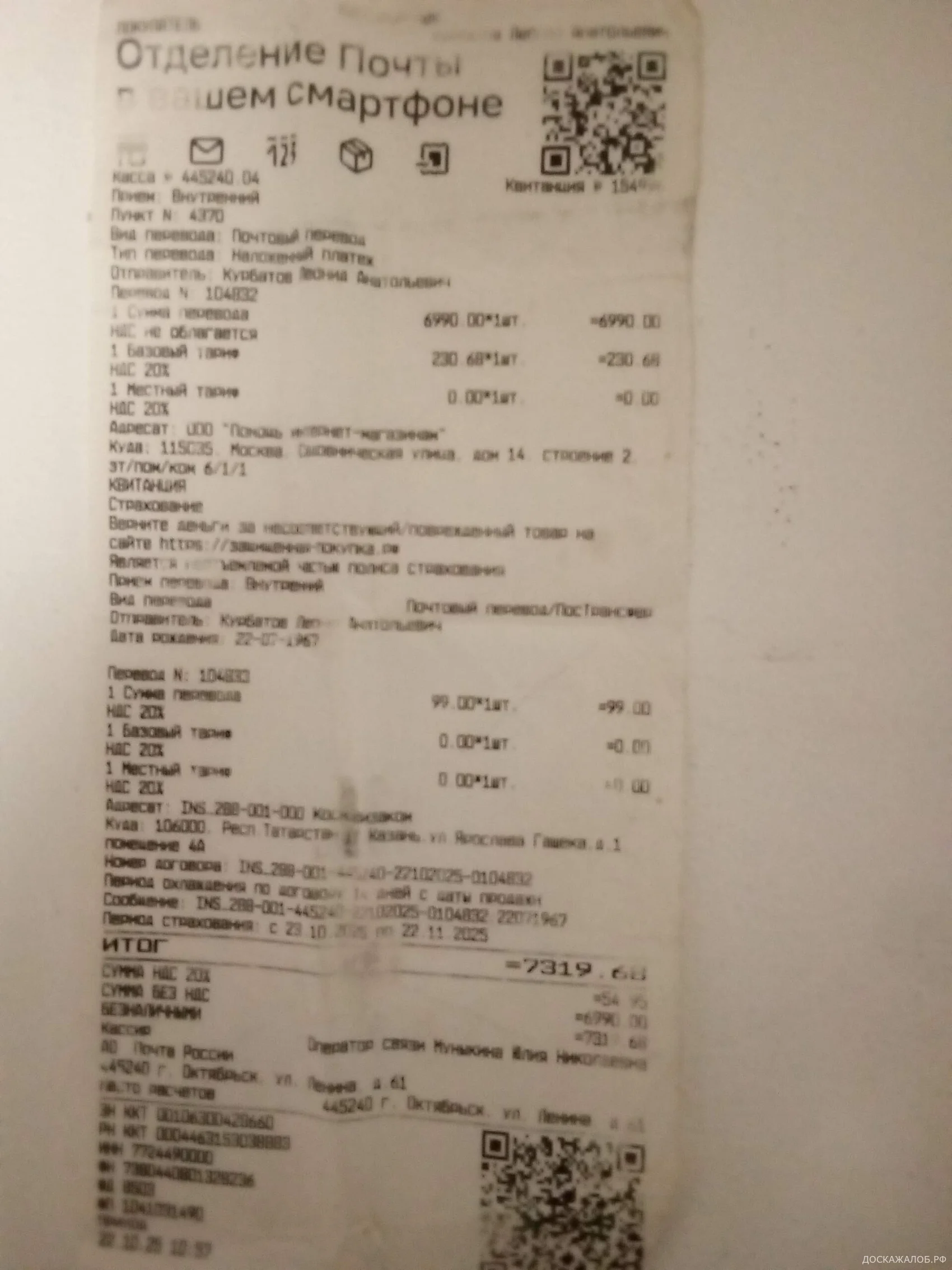 Нет обещанного подарка в размере 2000р.который должен быть после оплаты и получения заказа на почте.