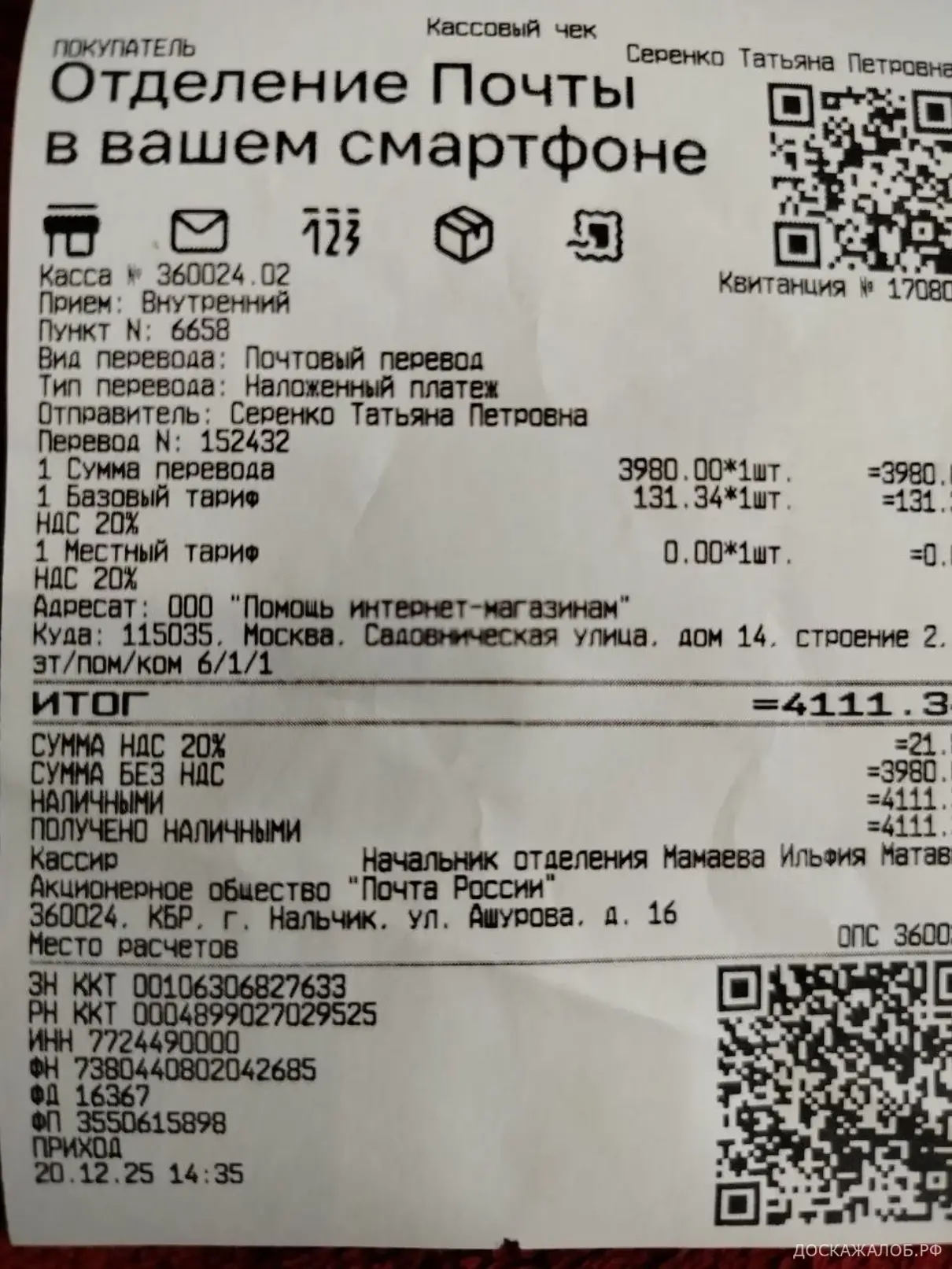 20.12.2025г. я получила посылку №80099116934602 от "МЕТАШИП-МОСКВА" (ДИДЖИТАЛ, ЕСПП 026352). Адрес отправителя Московская обл., г. Мытищи, пр-кт Новомытищенский, д.47А.Мною была заказана многофункциональная швейная машина, с лапкой для выметывания петель по акции за 2990 руб., а прислали мини мультифункциональную швейную машинку (которую я никогда не взяла бы) с мизирным набором возможностей. Плюс ко всему разбитый пенопласт и разорванная коробка, которую пытались склеить скотчем перед отправкой. На первом снимке машина, которую я заказала, а на других то, что получила. Прошу вернуть мне деньги или выслать, то что я заказала.
