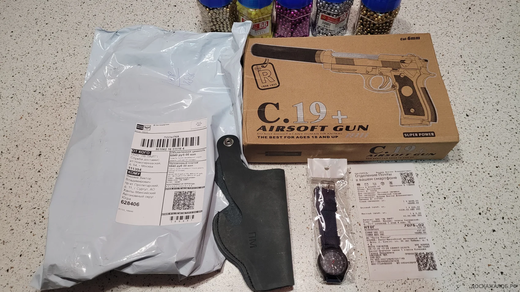 Заказывал пистолет «Макаров» с металлическими составляющими. Пришёл пластиковый пистолетик, причём кобура пришла как раз на ПМ.