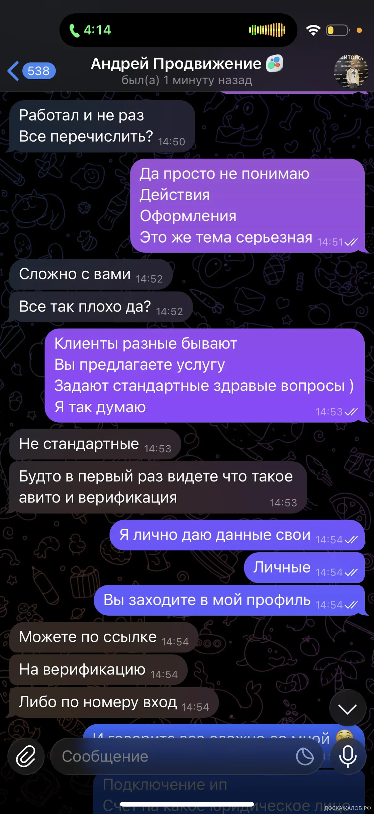 Прошу вас решить вопрос и привлечь к ответственности мошенников в Telegram-ресурсе: авитолога Андрея и Артёма Сергеевича.