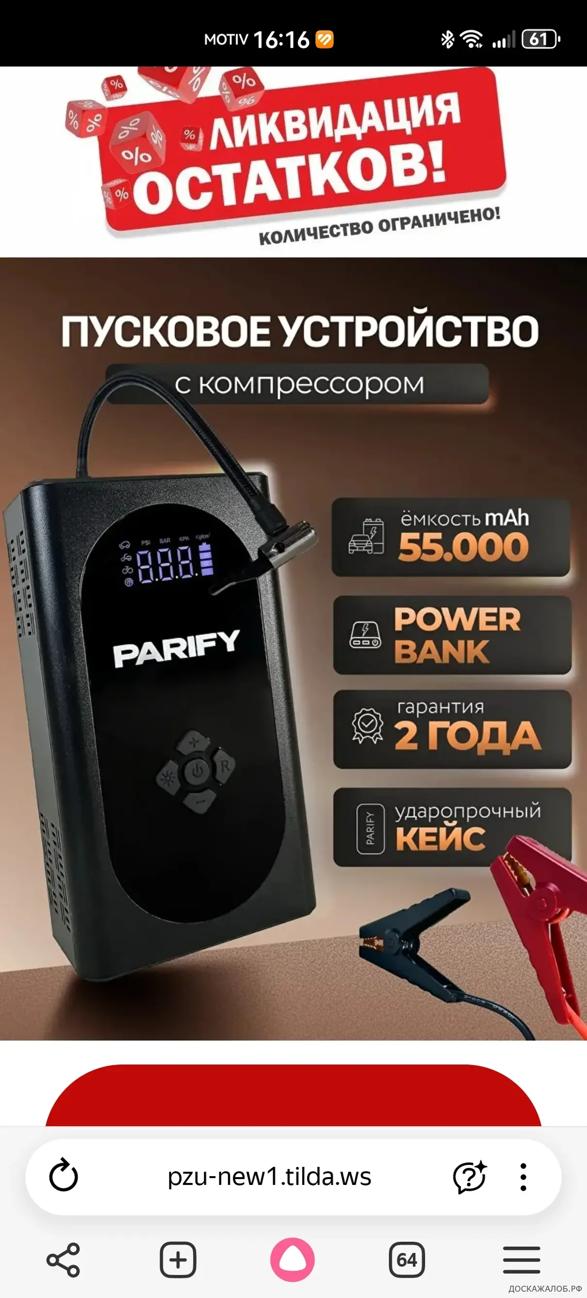 Заказал и оплатил зарядное устройство с компрессором, а получил более дешёвое устройство без компрессора, другого производителя.