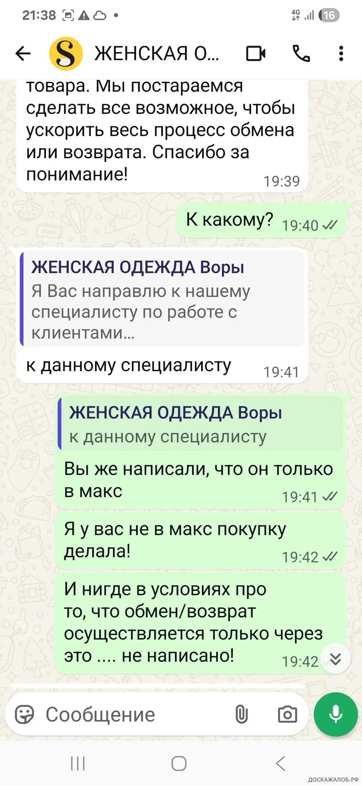Пришло полное несоответствие! Написала на телефон, указанный на сайте: меня перенаправили на другой номер и сказали писать именно в MAX. Я ответила, что они не имеют права, но им плевать на закон — общаются откровенно хамски.