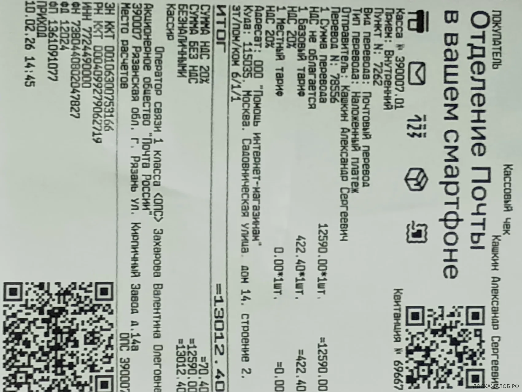 Заказал зимний костюм «Поплавок» 10 февраля 2026 года, он пришёл мне на почту.