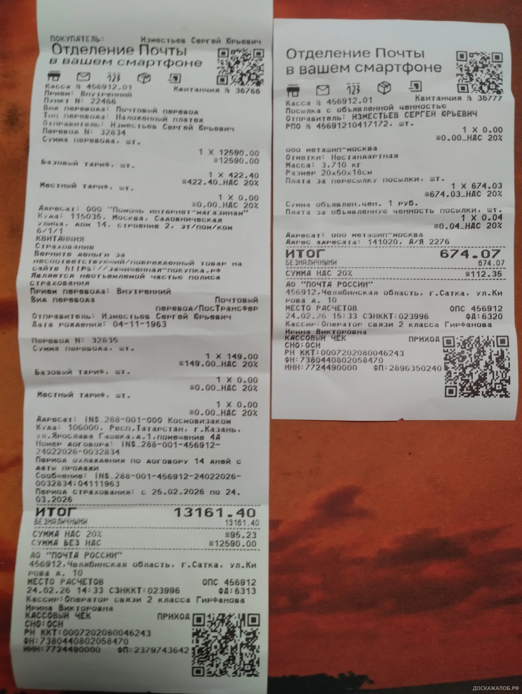 Вместо культиватора за 12450 руб. прислали маленький культиватор за 5990 руб. Вместо 4-х больших фрез- 2 маленьких фрезы, нет ни дополнительных насадок. ни инструкции, ни каталога и т.д. Оформил в отделении почты возврат за свои деньги, чеки прилагаю и жду объяснений за этот обман.
