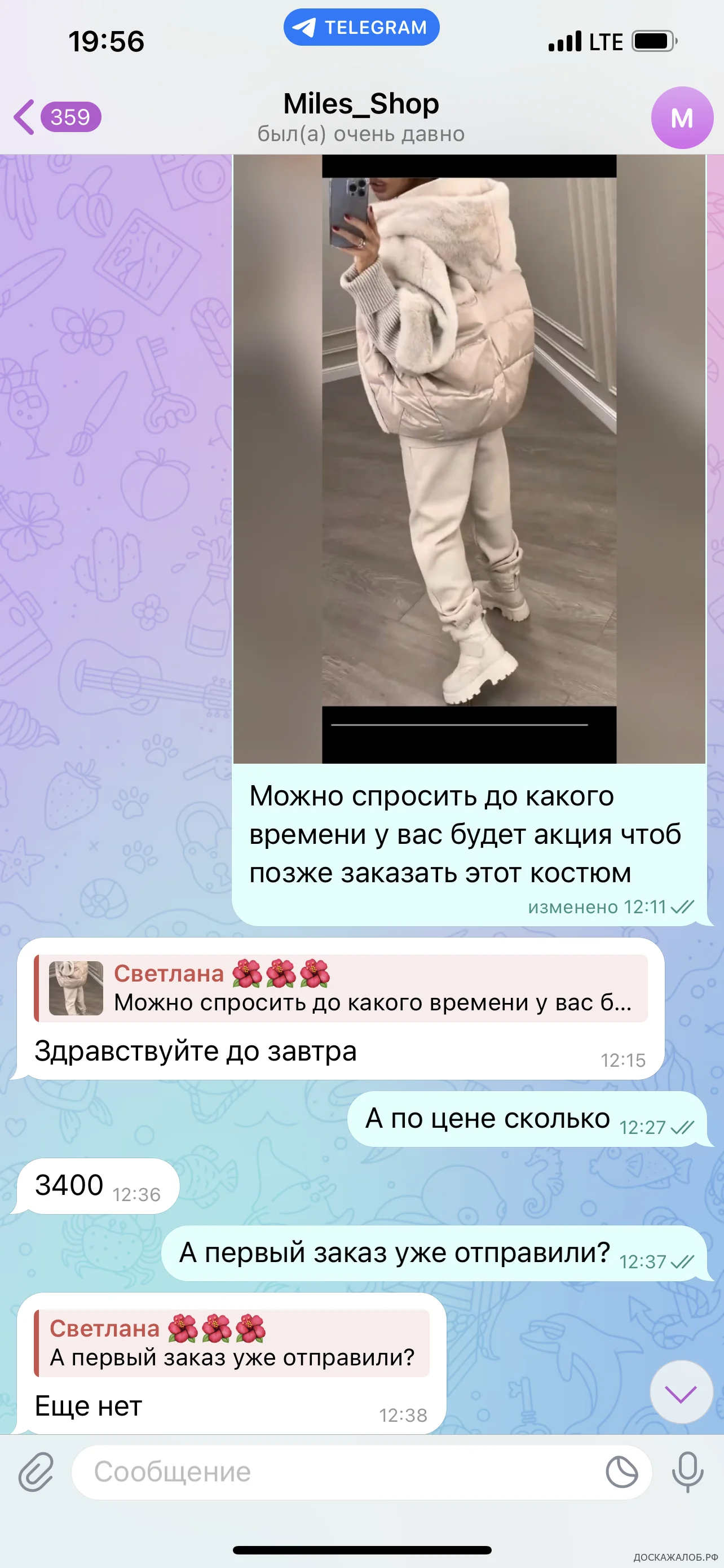 Хочу рассказать вам, как я попалась на удочку мошенников. Miles_shop в «Контакте» рекламируют турецкие вещи хорошего качества, но присылают вещи самого дешёвого качества: они просвечиваются, цвета не соответствуют заказанным.