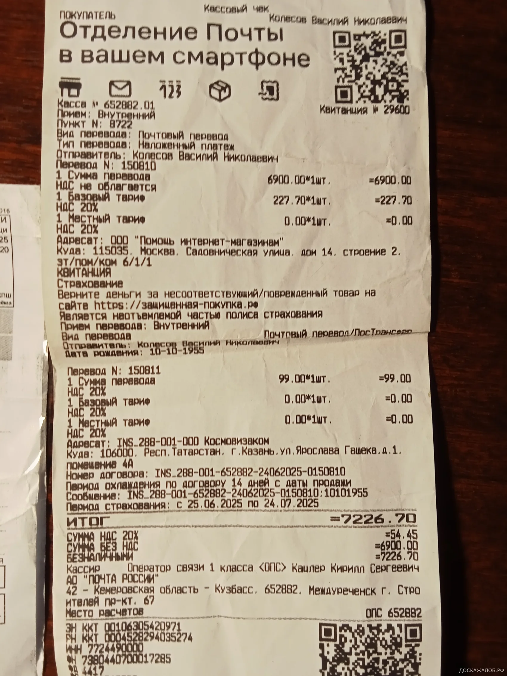21 июня товар пришёл на почту, я оплатил 7226 р. 70 к. После вскрытия обнаружил, что это не то, что заказывал. Примерно товара положили на 2000 р.