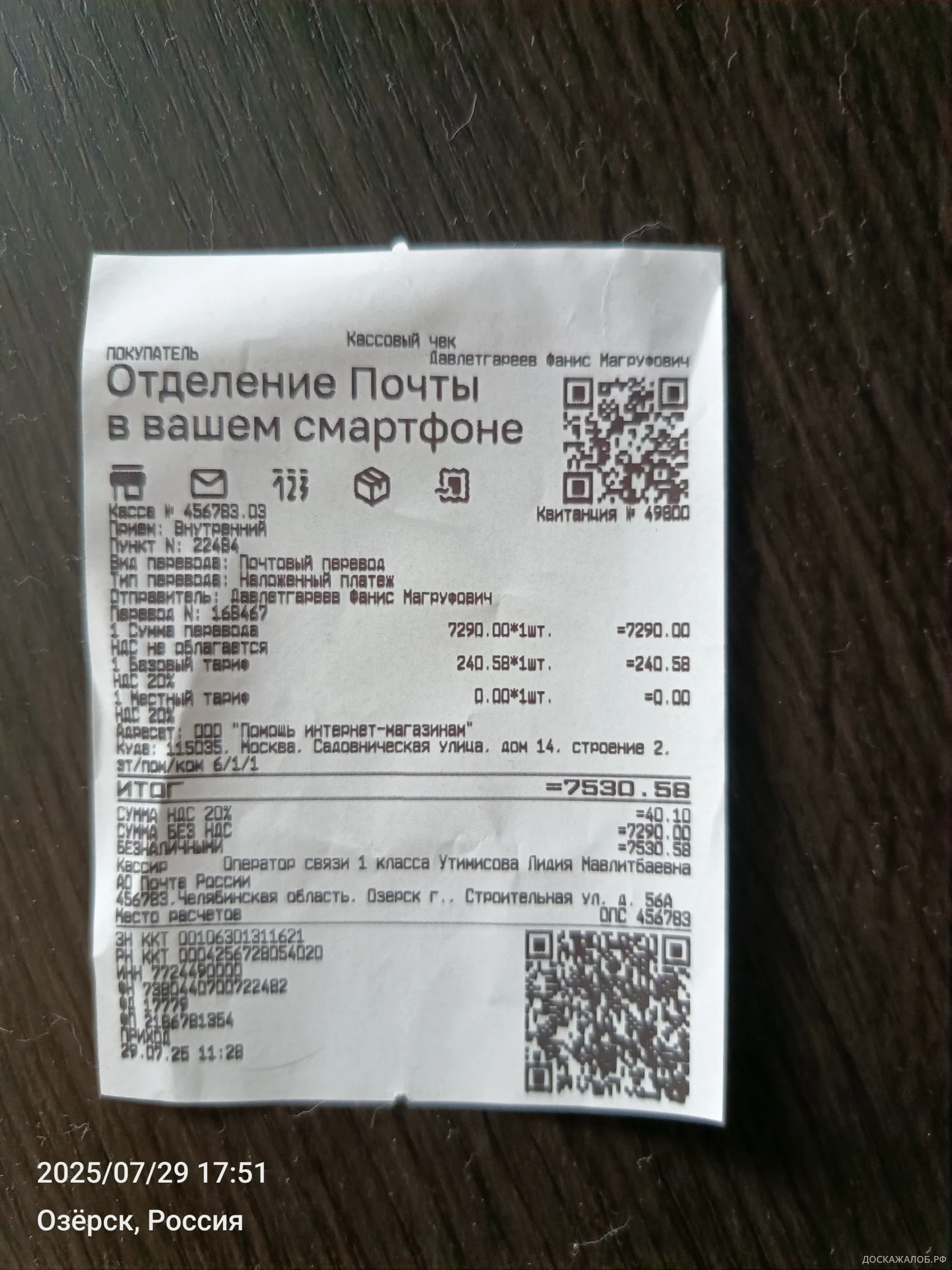 Заказал рыболовный комплект удочек, заплатил с доставкой Почта России-7530,58рублей, прислали комплект стоимостью 2809 рублей.