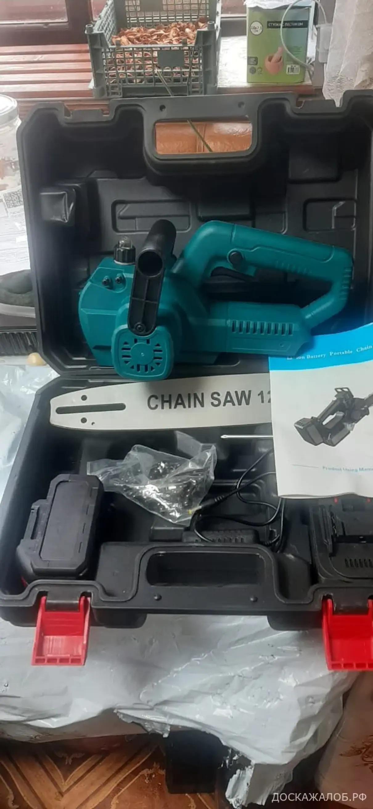 По договору фирма MAK ITA сборка Китай, 2 цепи,2 аккумулятора литий-ионные, зарядка+перчатки и защитные очки. Вот такую комплект акцию обещали.