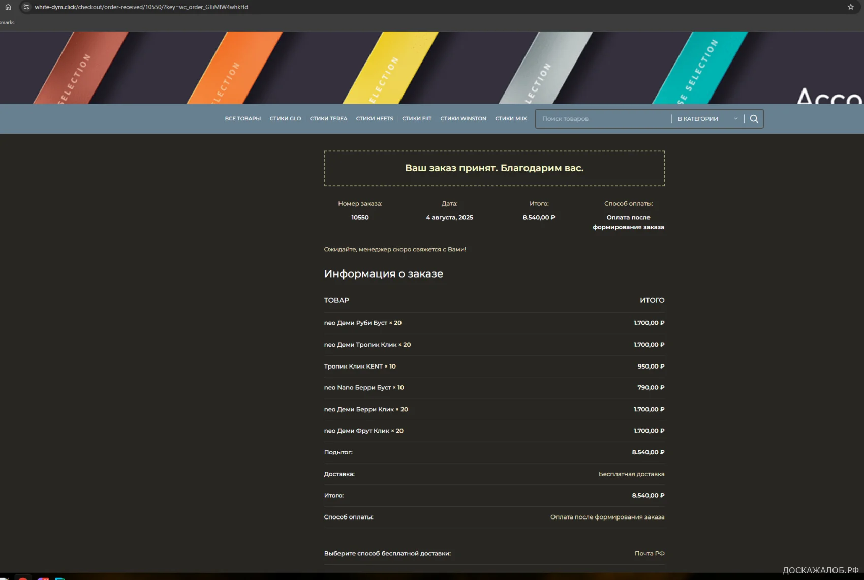 Фейковый интернет магазин, после оплаты товара удаляют переписку и пропадают с деньгами. Перевод происходит через банк Узбекистана. Отправлено заявление в МВД. Страница мошенника @tabachnik_zakaz.