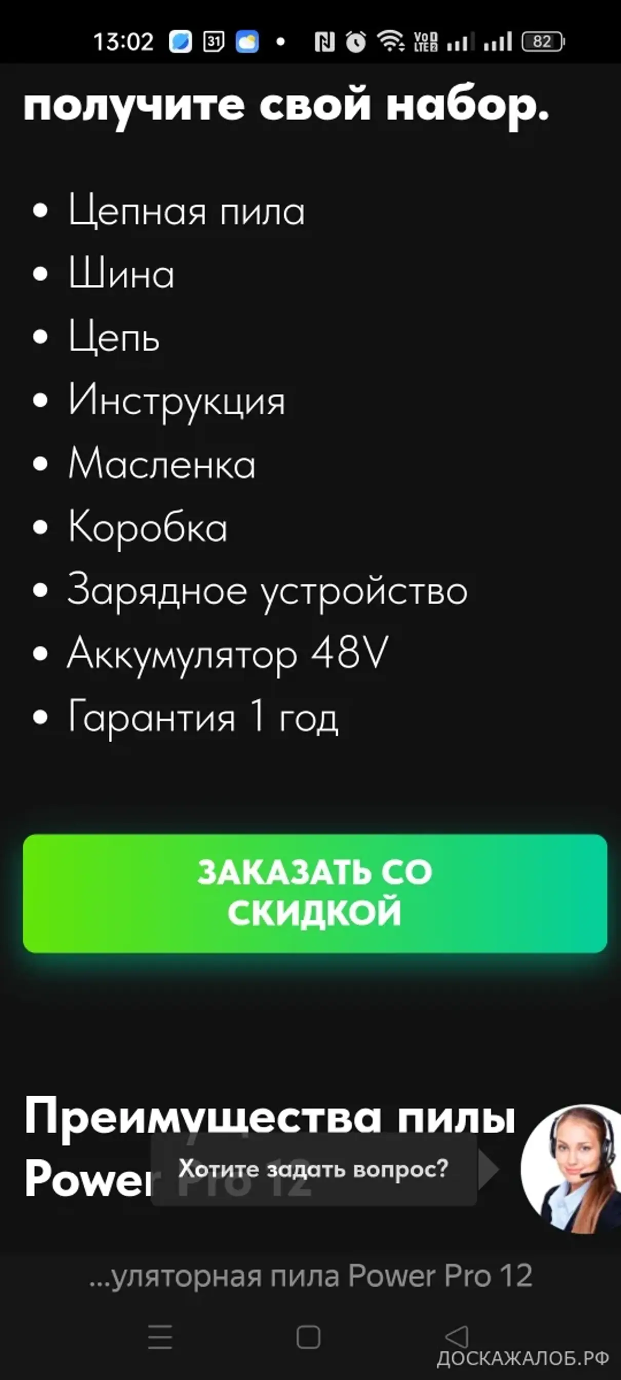 Мной был сделан заказ на вашем сайте на цепную пилу Power Pro 12 за 2999 р. с аккумуляторами 4000 мАч с индикатором заряда (фото прилагается). Оператор предложила доплатить и купить пилу повышенной мощности с аккумуляторами повышенной емкости по 9000 мАч каждый и с ускоренной зарядкой за 90 минут.