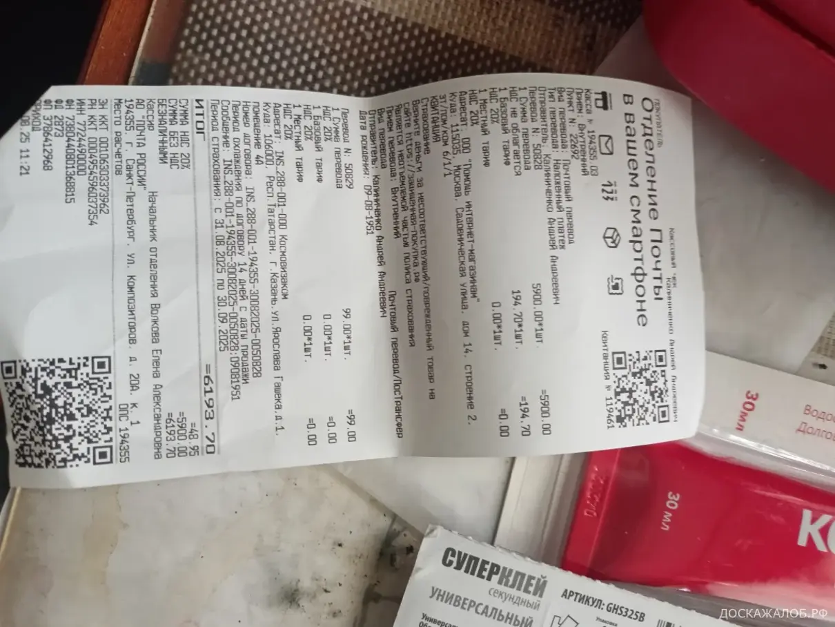 В реальности вами был отправлен и прибыл другой, не обговорённый по телефону, товар (фото прилагаются):