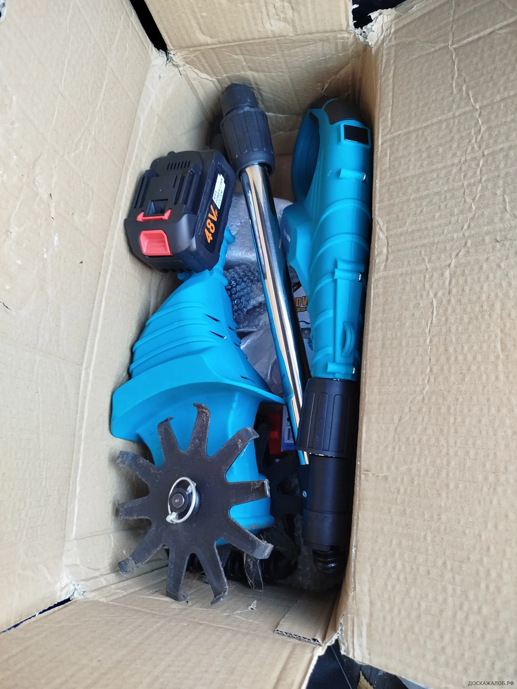 Пришел культиватор не той комплектации. Заказывал для обработки целины, посоветовали более мощный с двумя аккумуляторами и двумя ручками. Должен быть набор ножей для рыхления и вспахивания.