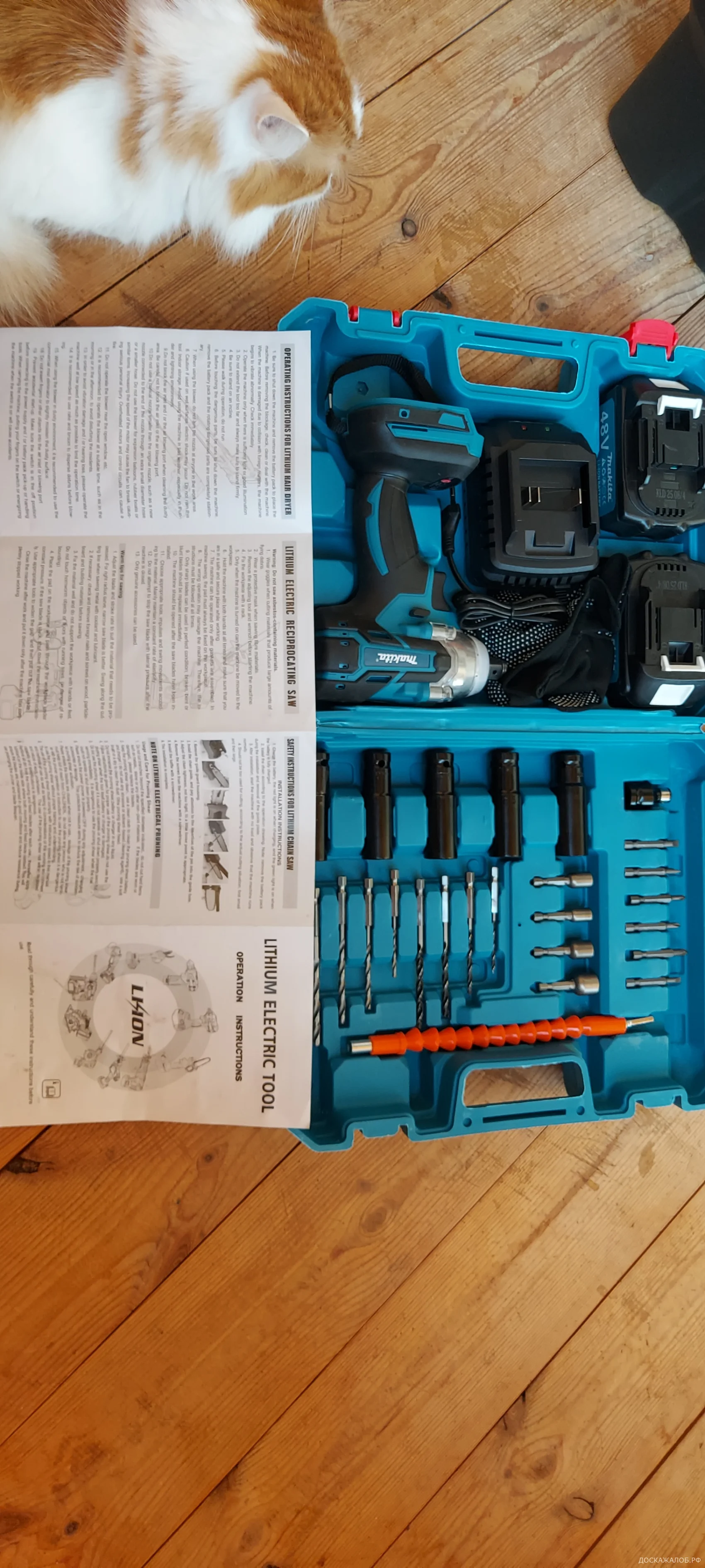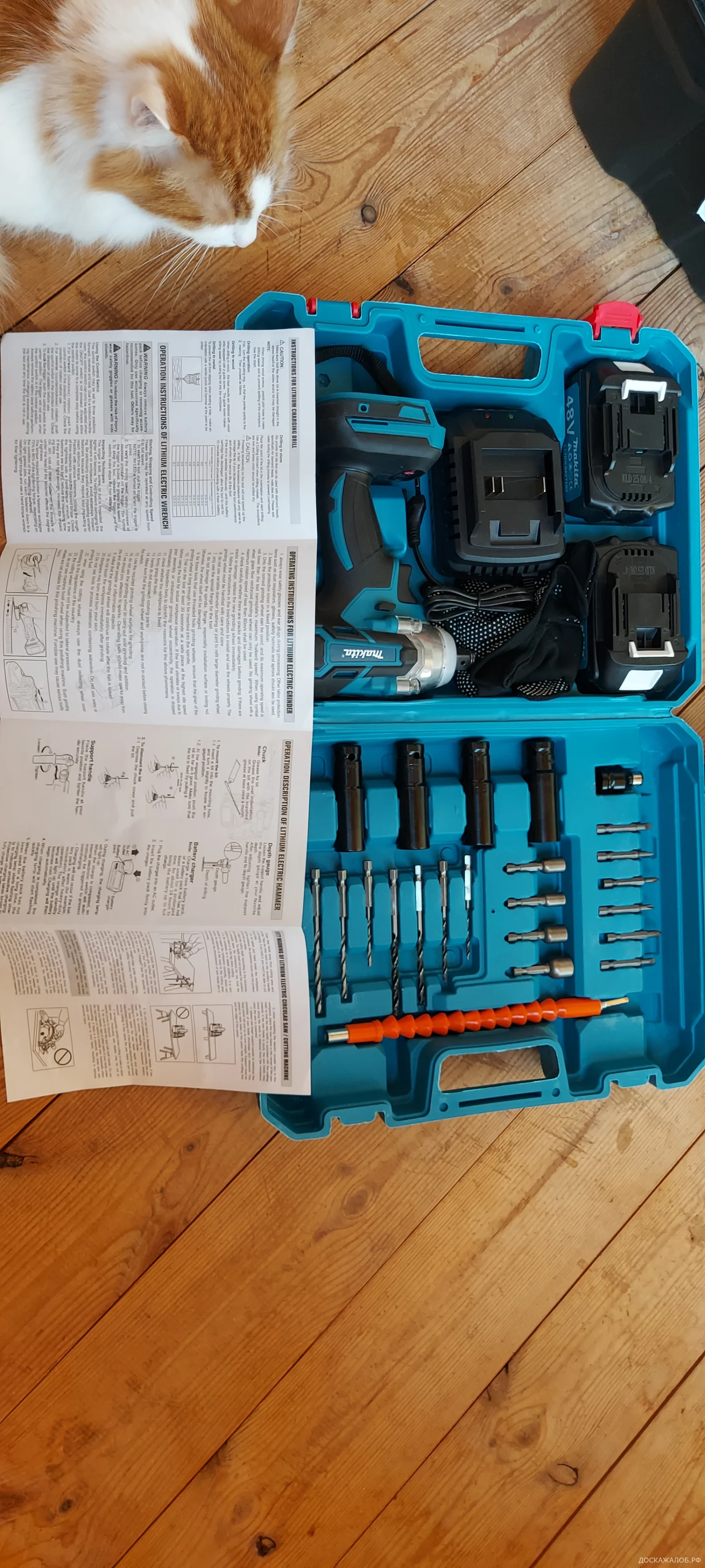 В итоге прихожу на почту, проверить сразу не дали, сначала оплата. Пришёл домой, открыл посылку, а гайковёрт чуть больше размером обычного дешёвого шуруповёрта и не такой, как на фото и видео с сайта. В инструкции ни слова по-русски и даже нет ничего про гайковёрт. Зарядник очень лёгкий, на аккумуляторах написано, что 48 V, а измерив, там едва 20 V, но они полностью заряжены. На самом гайковёрте наклейка с размытыми оборотами. И да, самое главное, подарили они мне обычные перчатки. Возможно, ребята перепутали и положили мне не ту модель.