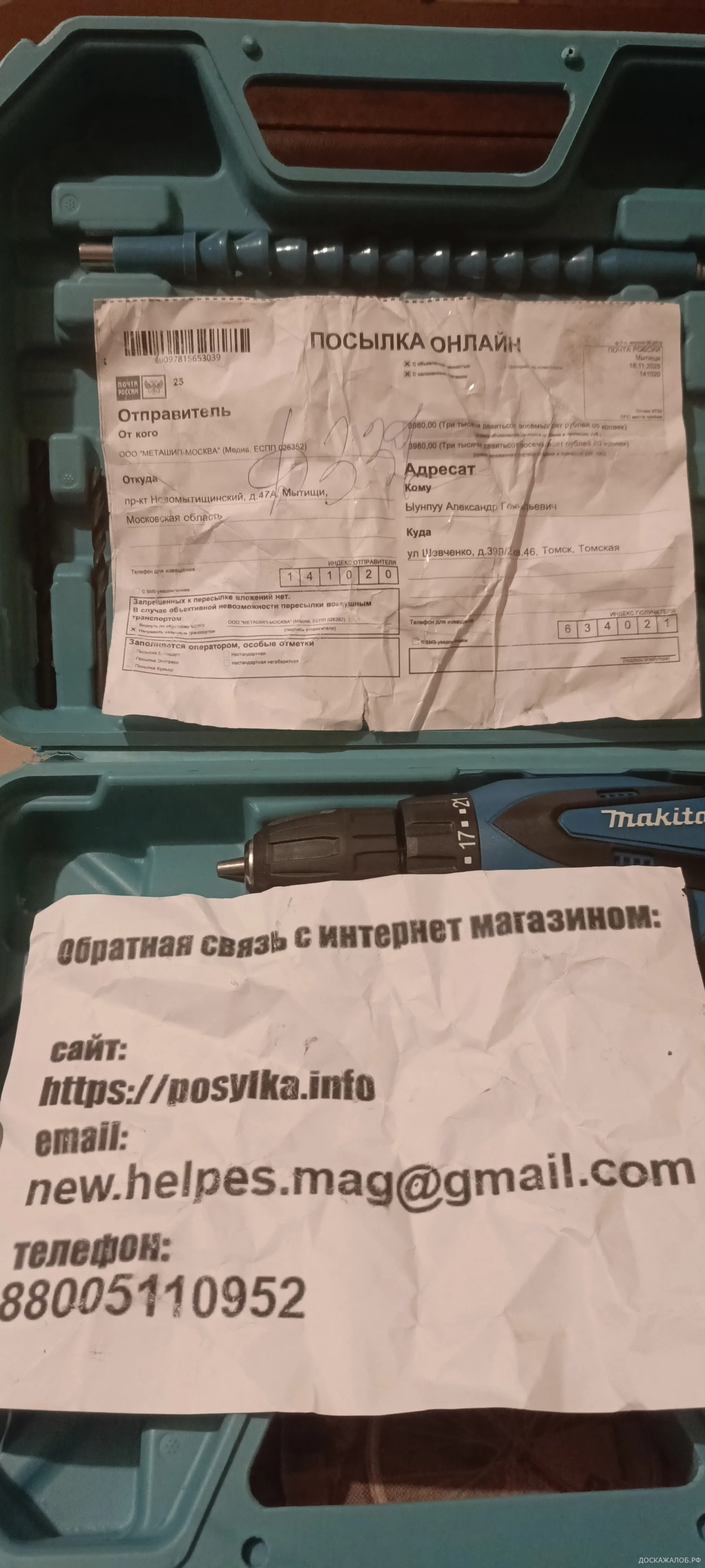 Заказал шуруповёрт DeWalt с металлической головкой в черно-желтом цвете, фото прилагаю. Пришел совершенно другой шуруповёрт, с пластиковой головкой с названием makita, в черно-зеленом цвете, фото прикладываю. При заказе перезвонил оператор, чтобы подтвердить заказ, которому я продублировал данные заказа и уточнил адрес почтового отделения. В итоге пришло не то и не туда. Посылка пришла на другой почтовый адрес, что создало мне крайнее неудобство. Хочу вернуть деньги или тот шуруповёрт, который заказывал.