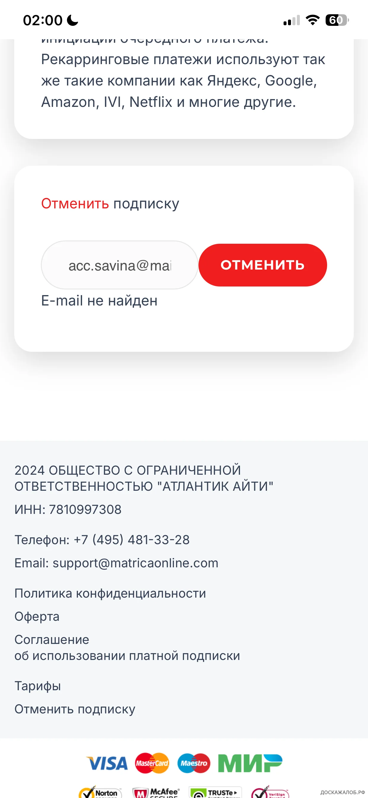 » Жалоба / отзыв: Matricaonlin.com - Оказался от подписки