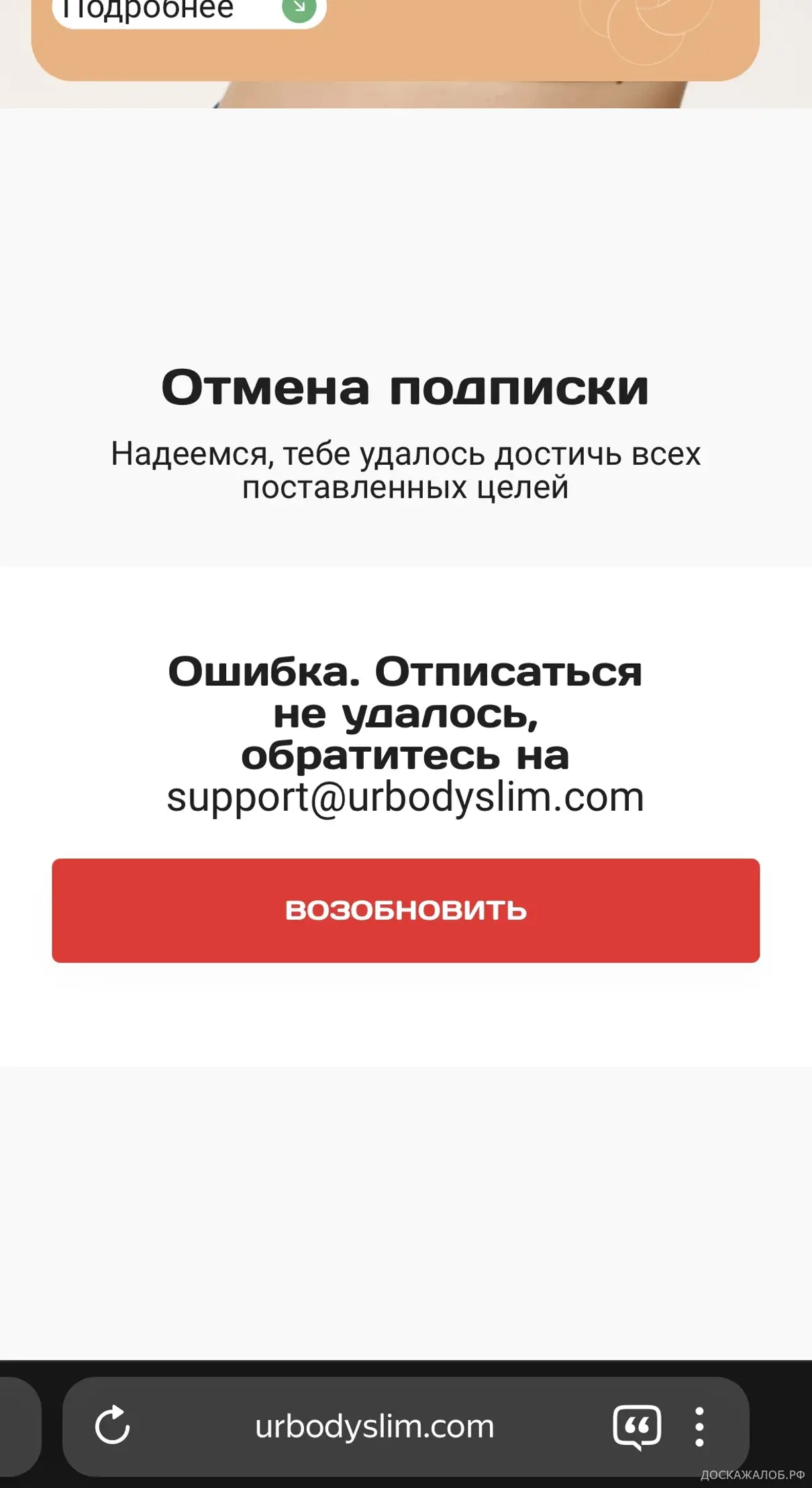Произошло незаконное списание средств якобы за подписку на курс указанной организации. Никаких подписок и согласие на обработку данных я не давала. В приложении банка числилось наименование одной организации, в документах о списании уже Urbodyslim.com UrBodySlim. Оформить отказ от рассылки и возврат денежных средств не предоставляется возможным, так как любые действия на их сайте или указанных контактах, выдают ошибку.