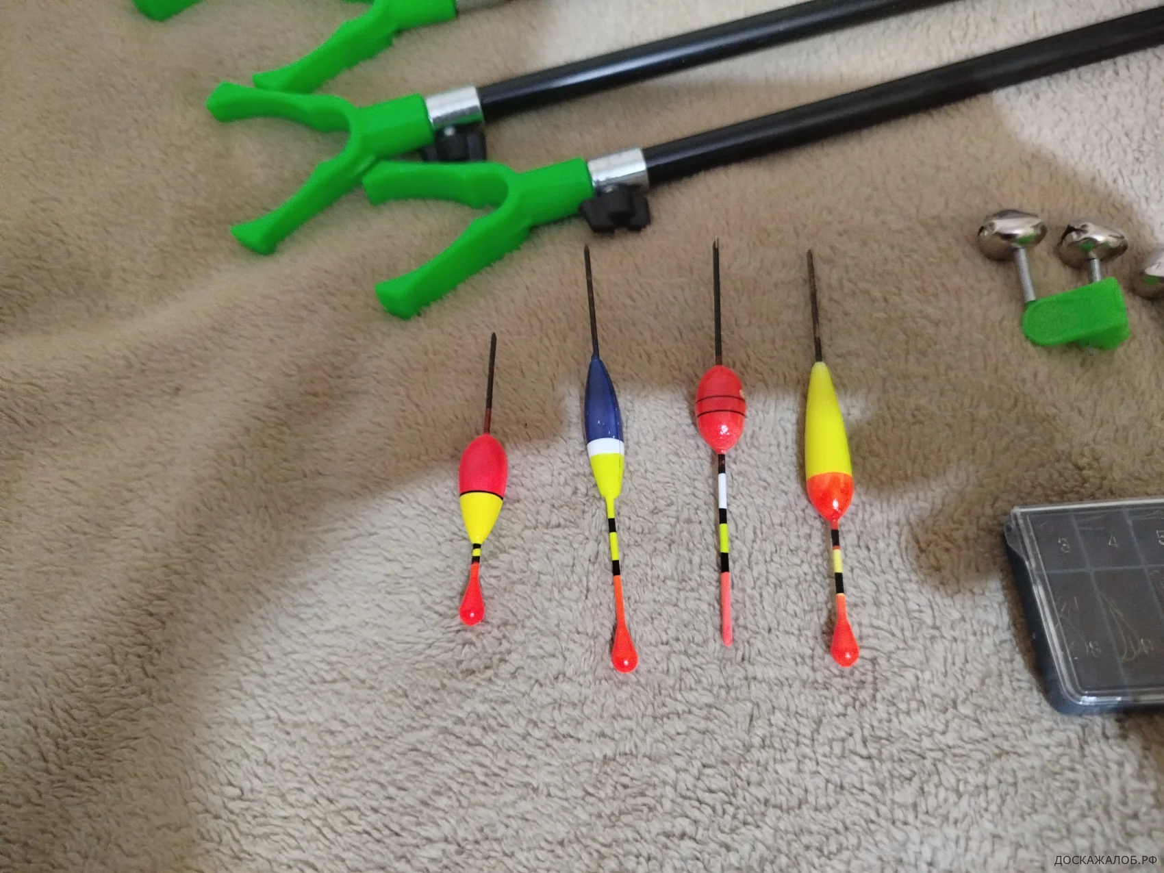 Поплавки разнокалиберные, маленькие, детские, хотя на фото с рекламы совсем другие, длинные и оснащенные, с грузами, леской и крючками.