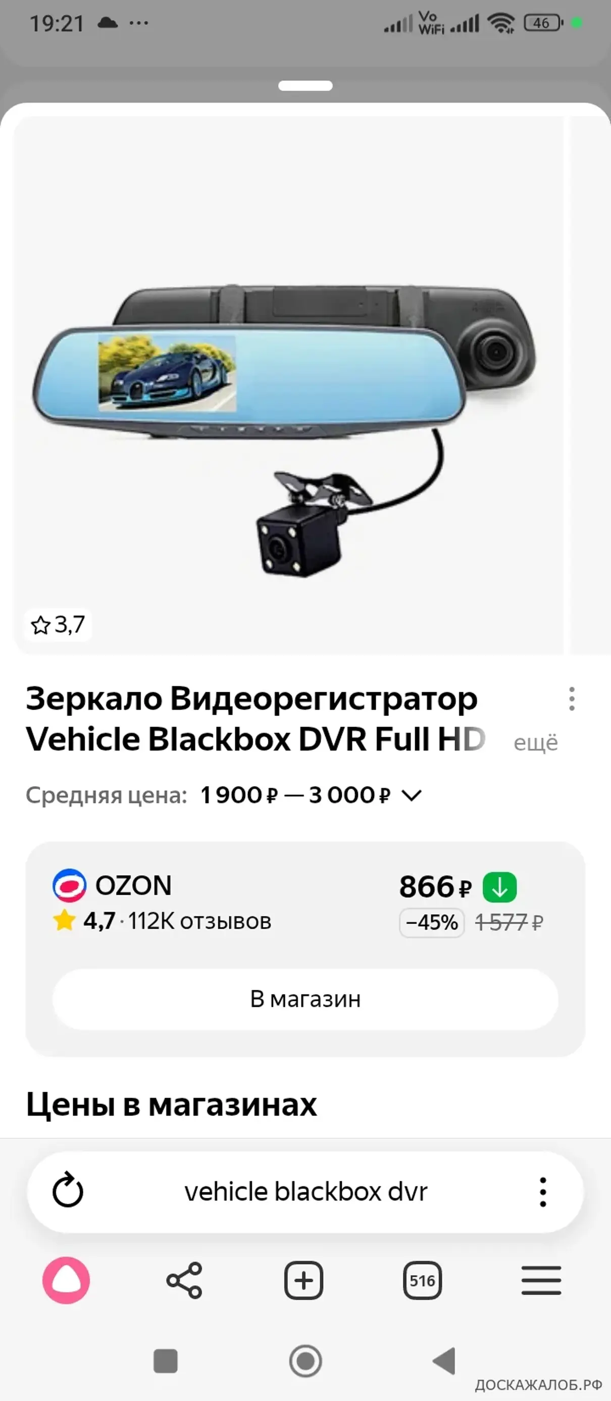Решил приобрести видеорегистратор с радар детектором Neoline x-cop 9100s из рекламы по акции за 2190 р. В количестве двух штук (один в подарок). Оставил телефон на сайте, через полчаса перезвонила девушка. Стала предлагать более продвинутые модели по цене от 4000 р до 8000р. Но я попросил прислать эту модель в двойном экземпляре. Посылка пришла наложенным платежом, на почте не разрешили проверить содержимое упакованной посылки, пока не произведу оплату. В посылк, на сумму 5370р оказалось зеркало видеорегистратор стоимостью на озоне в 866р в одном экземпляре (хотя бы два отправили), у которого не работает камера заднего вида. Желаю вернуть потраченную сумму, о потраченных нервах говорить не стоит. Я пенсионер и было очень стыдно перед детьми и внуками за этот неисполнившийся заказ. Фото прилагаю.