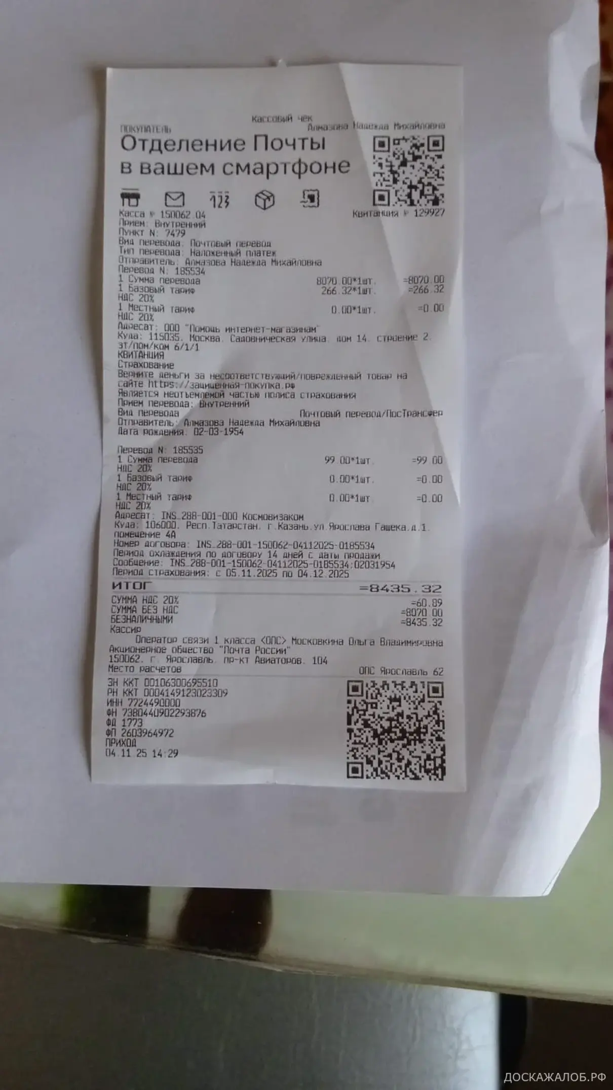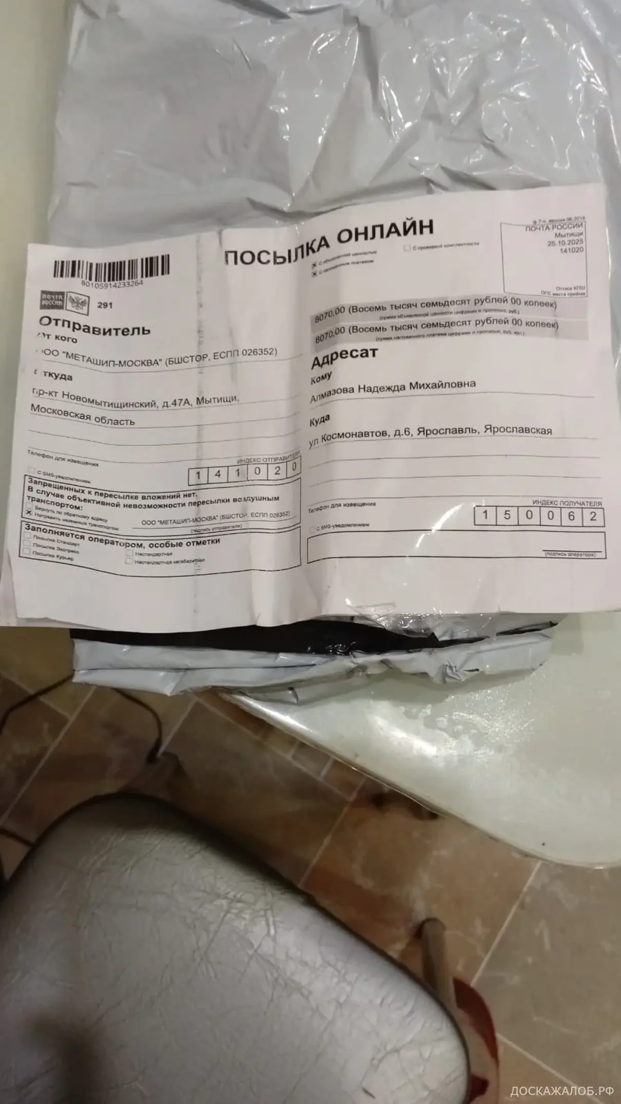Страна: Россия Область: Московская область Город: Москва Индекс: 141020