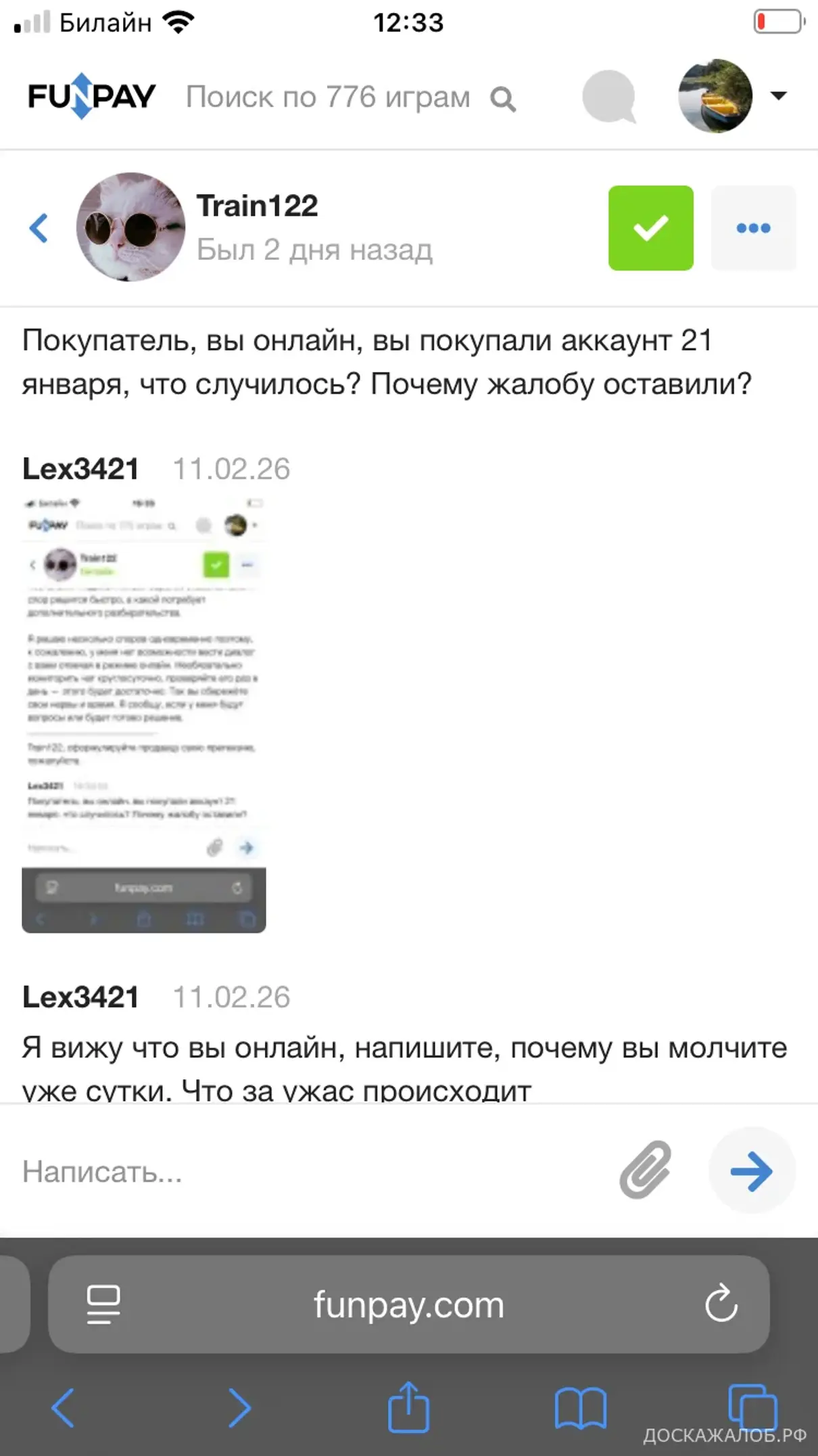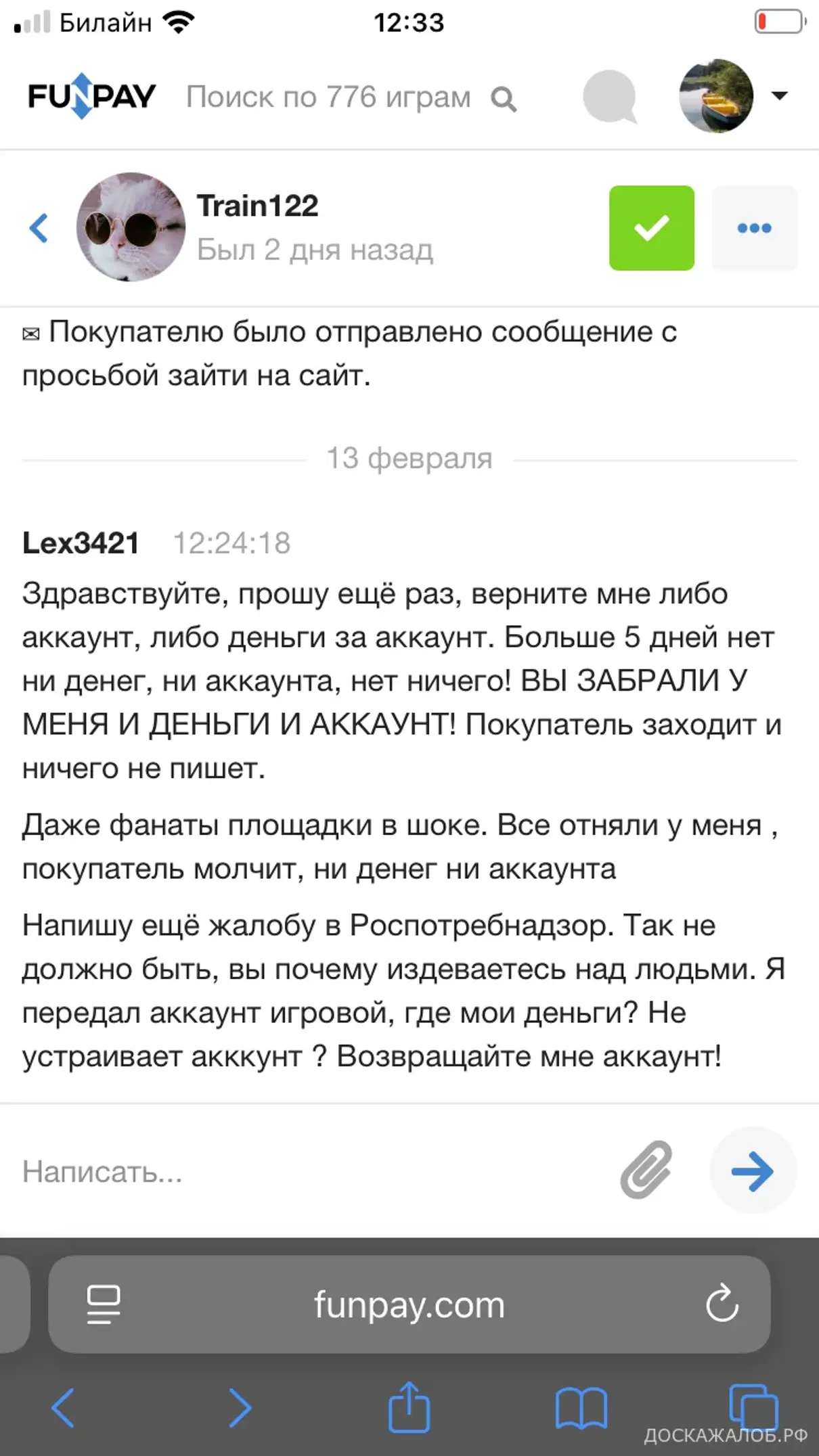 Сотрудники сайта FunPay занимаются мошенничеством, продал свой аккаунт покупателю на сайте FunPay, спустя 3 недели мне сотрудник поддержки под ником Marshal заблокировал аккаунт без причины. Я прошу указать причину, в ответ ничего. Полная тишина. Прошу вернуть деньги, или прошу вернуть мой аккаунт, в ответ также тишина. Обходите стороной этот сайт, лучше использовать более безопасные площадки