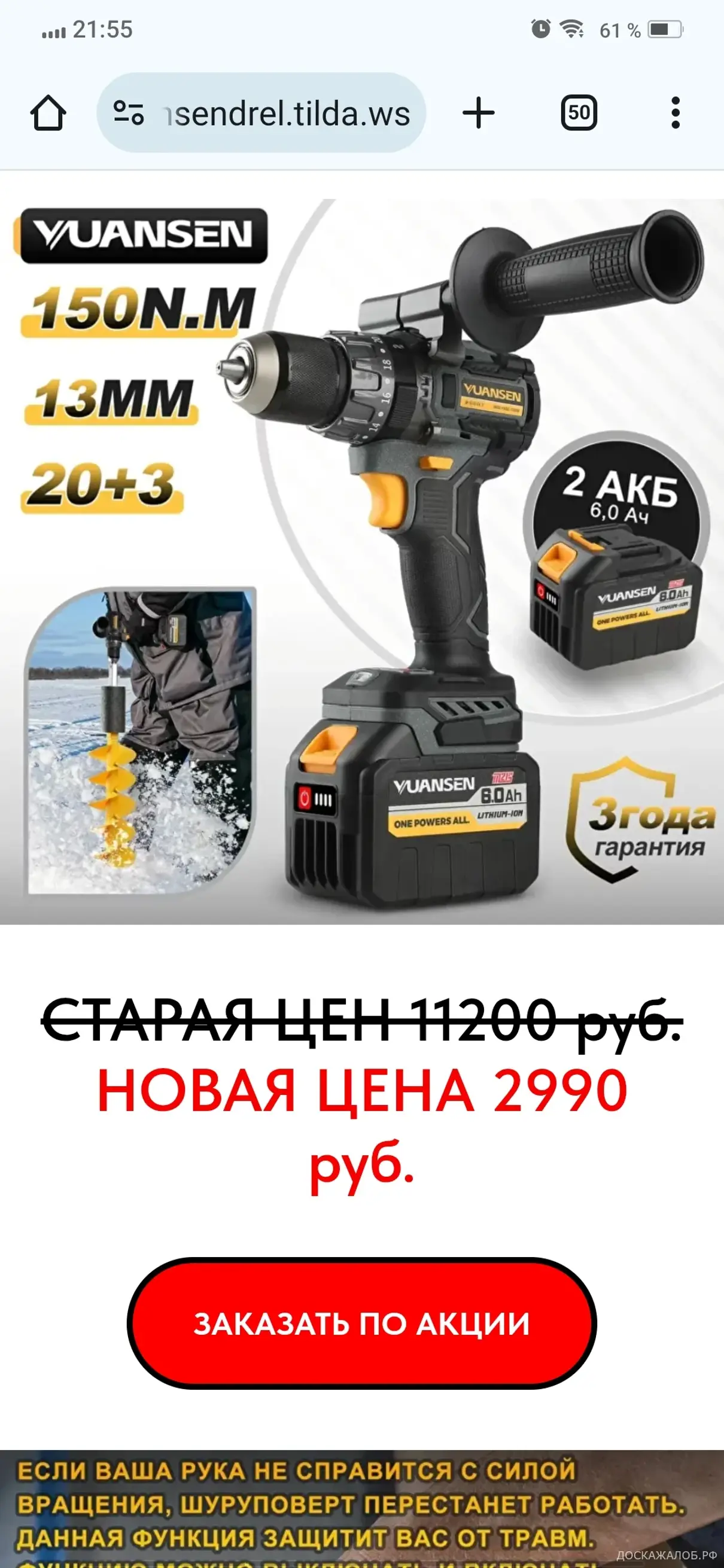 Я заказал шуруповёрт для ледобура с усиленным аккумулятором, а пришёл обычный для ввертывания саморезов, стоимость которого 3500 рублей. С меня же взяли 5490 рублей плюс стоимость перевода 153,50 рубля.