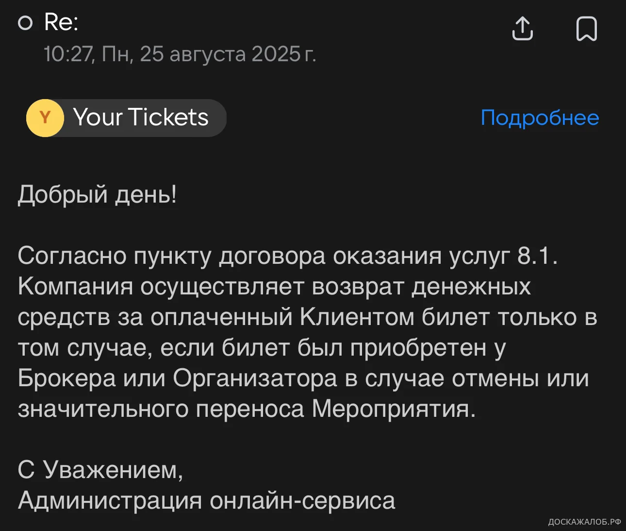 Написала на почту указанную на сайте, ждала ответ сутки, на что получила вот такой ответ (прикпрепляю ниже)