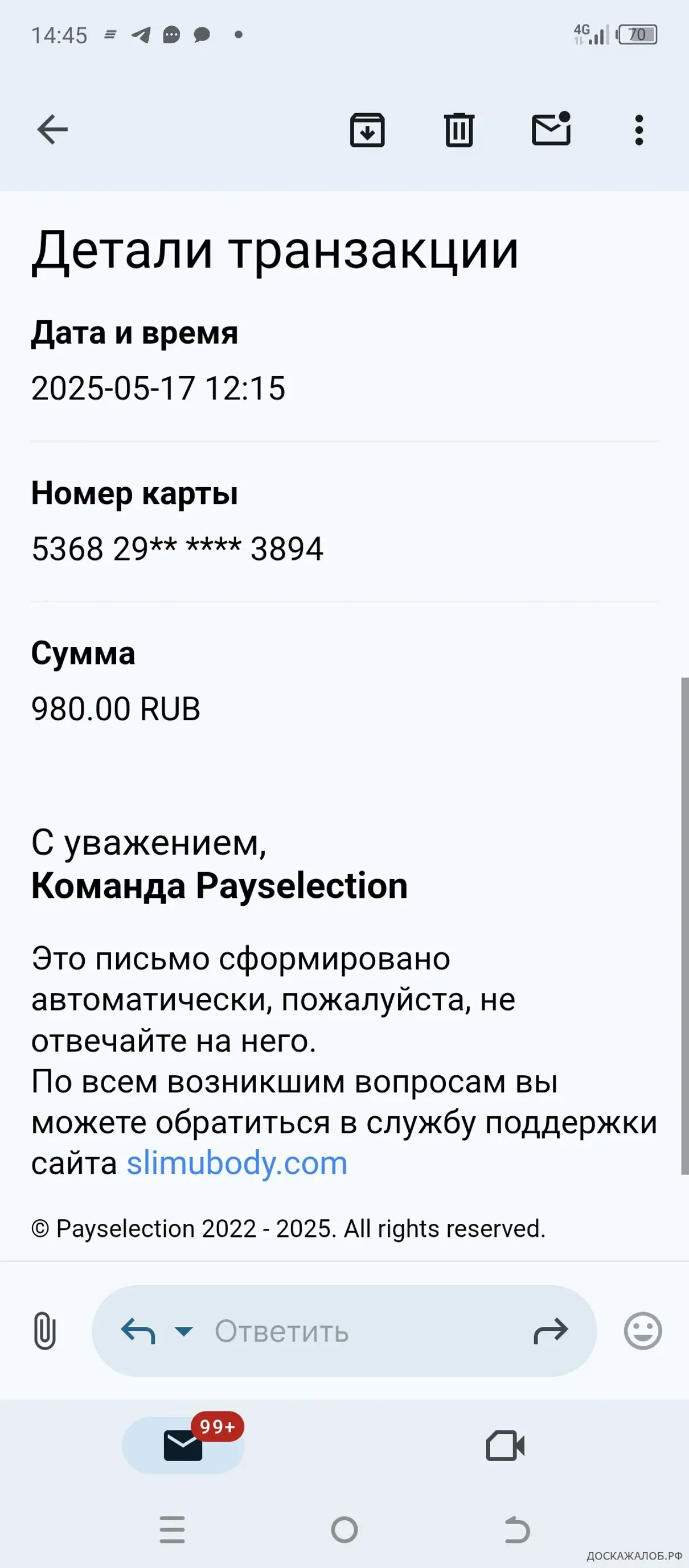 Списали 980 рублей. Никаких подписок не оформляла, услуги не оплачивала. При обращении в службу поддержки данного сайта на указанный в квитанции э/адрес получен ответ "страница не найдена".