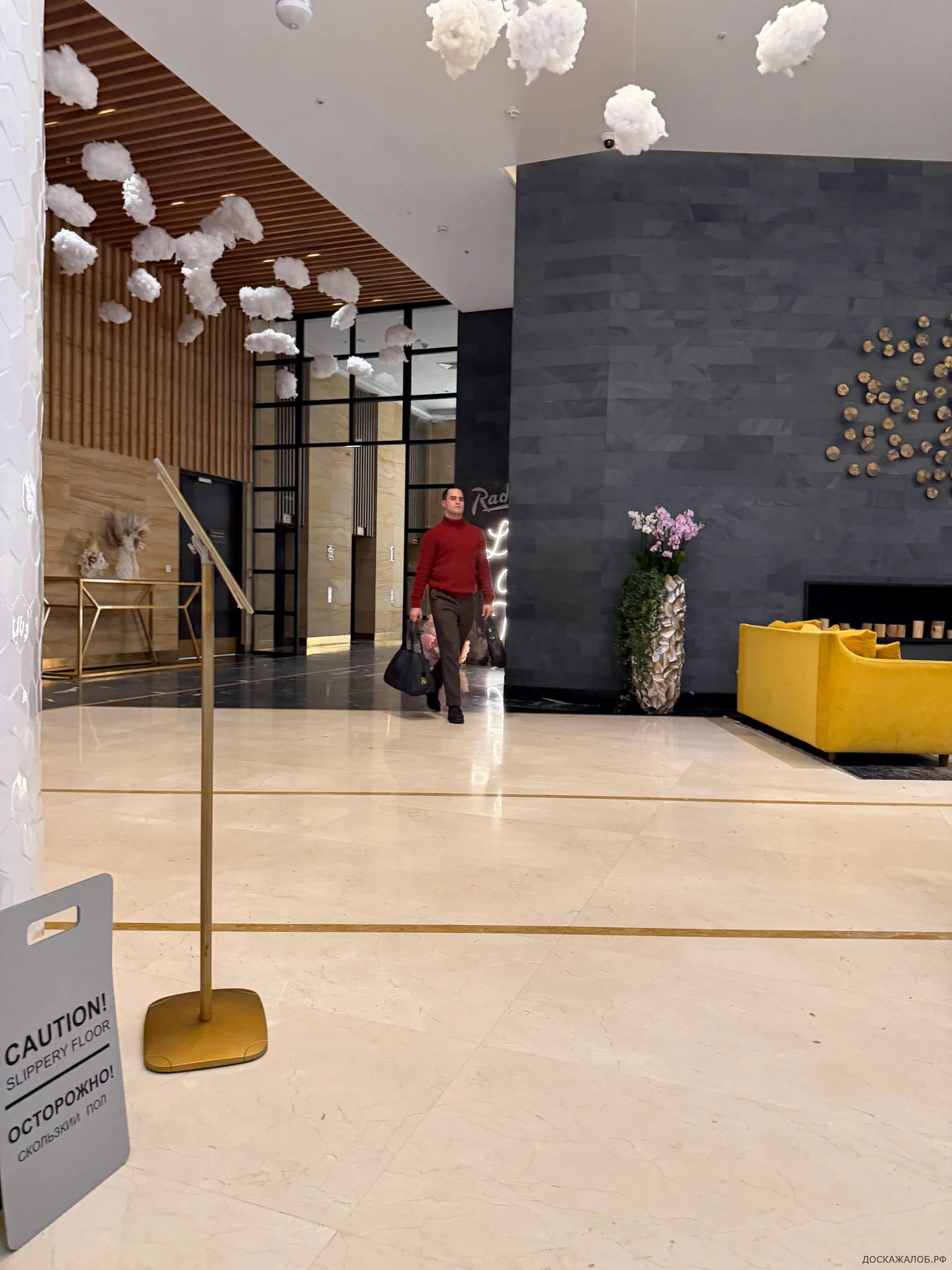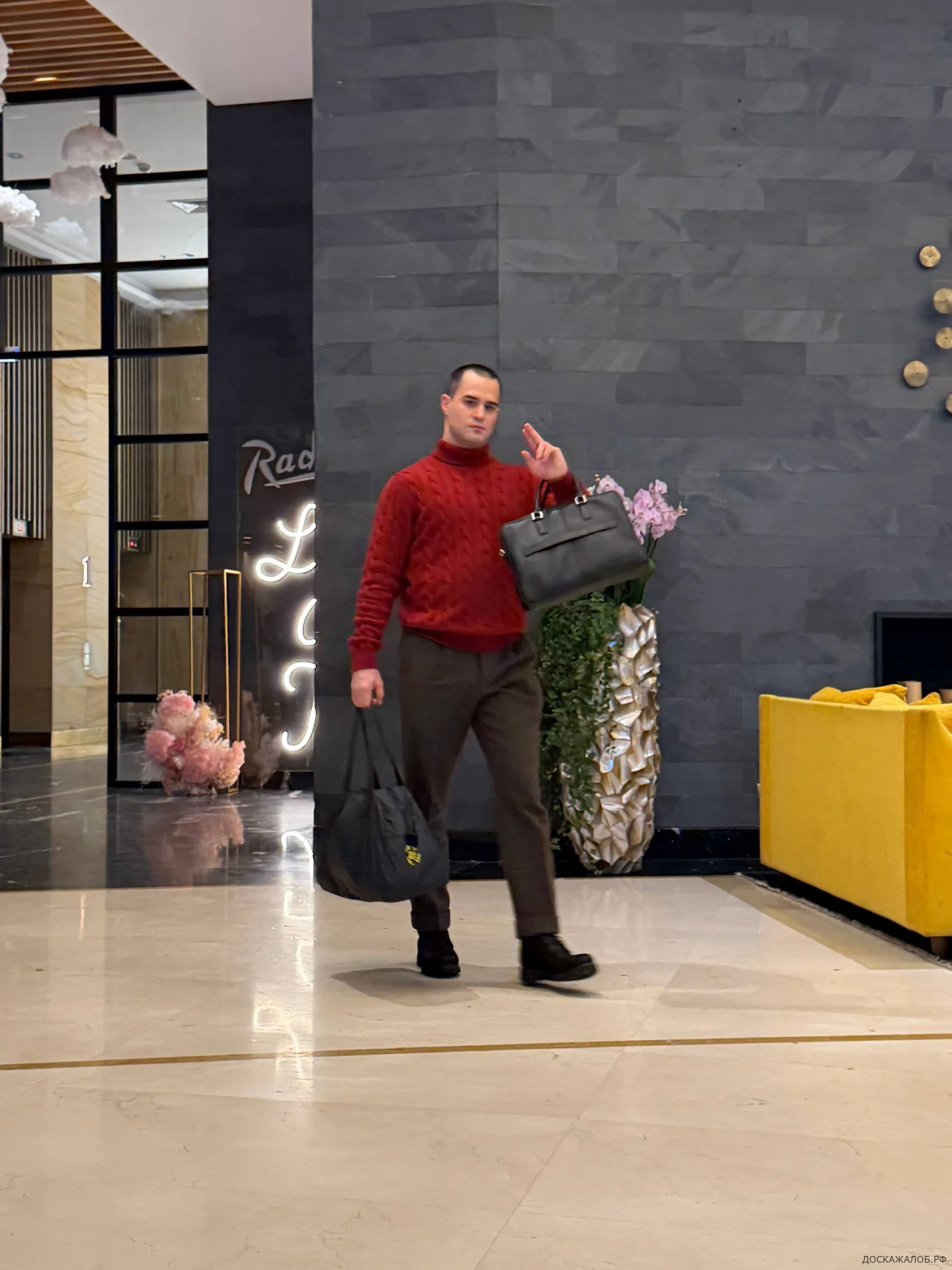 Потом я спряталась, позвонила на ресепшен, позвали охрану. Они помогли спуститься вниз. Он как раз стоял возле ресепшена, сказал, что я проститутка — и его отпустили. Далее он ходил туда-обратно раза три точно. На третий раз я сняла Владислава Карелина на видео. Он подошёл и предложил мне деньги, чтобы я молчала. Я отказалась. Он ушёл из отеля, но, возможно, поджидал меня где-то рядом.