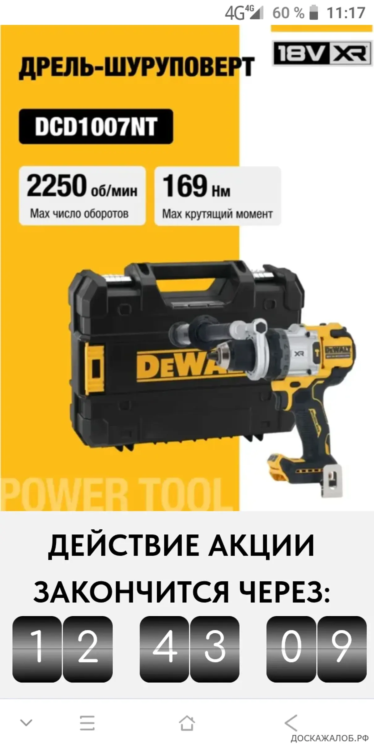 Согласно рекламных роликов о распродаже качественного инструмента фирмы DeWalt заказал оригинальный шуруповерт dcd1007 (первое фото) полный комплект (шуруповерт, насадки, 2 батареи, зарядная станция в качественном оригинальном кейсе). Прислали китайское гав-о (второе фото), которое на озоне стоит в районе 1500 руб. Я прочитал сейчас здесь очень много подобных жалоб и у меня возникает вопрос: почему до сих пор идет реклама этих жуликов, по которым уже давно плачет тюрьма и когда ими займется наконец полиция?