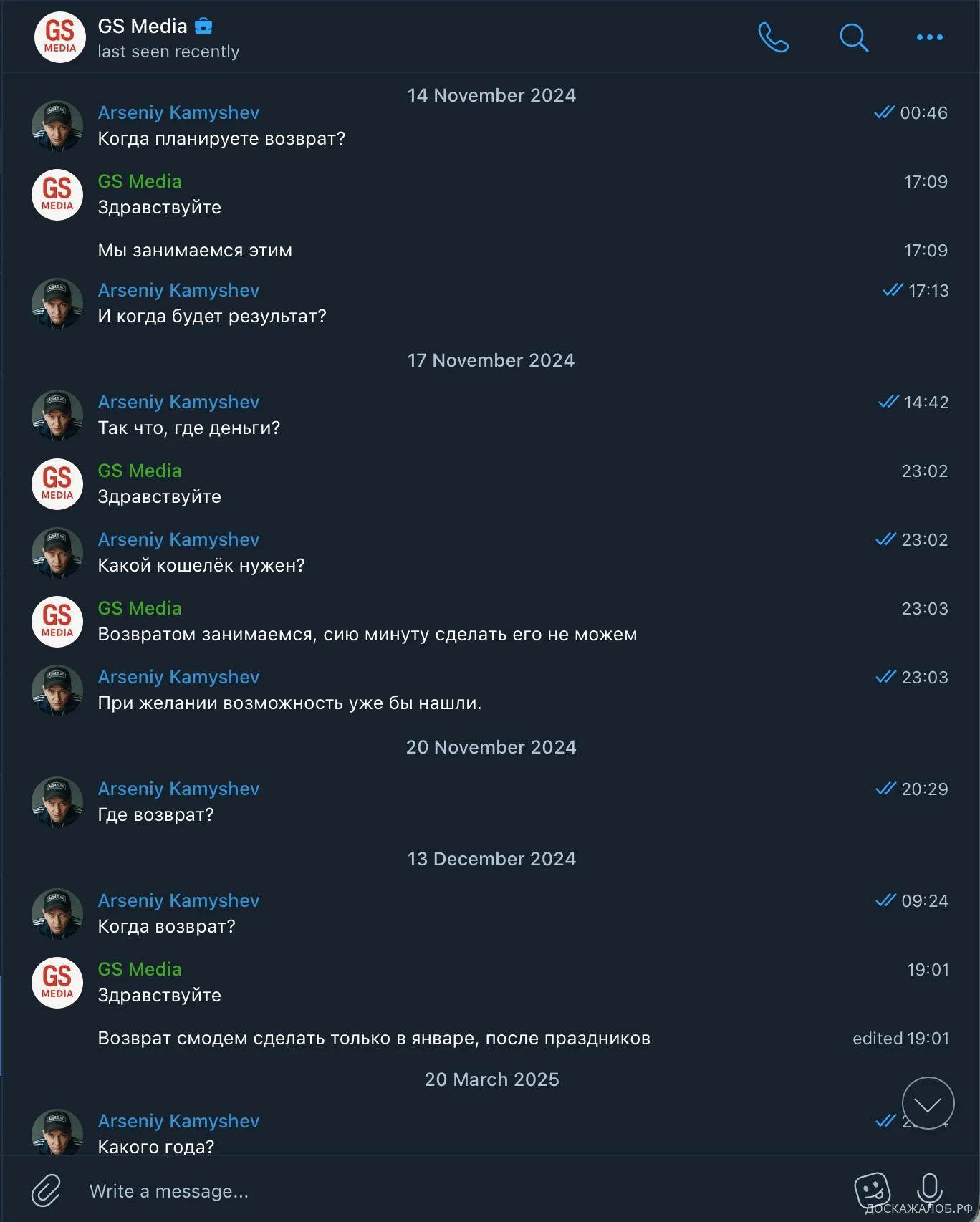 Я требую полного возврата денег за неоказанную услугу и оплаты всего периода пользования деньгами.