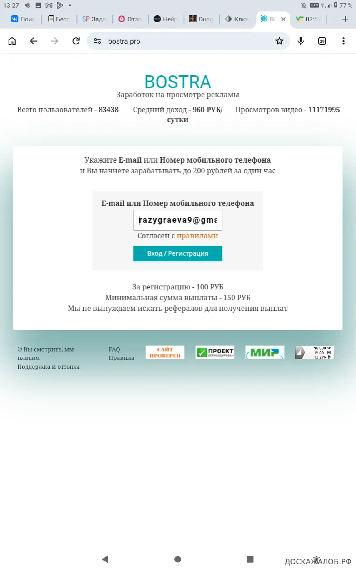 Сайт bfdc.pw, якобы для заработка, сейчас находится по другому адресу — bostra.pro.
