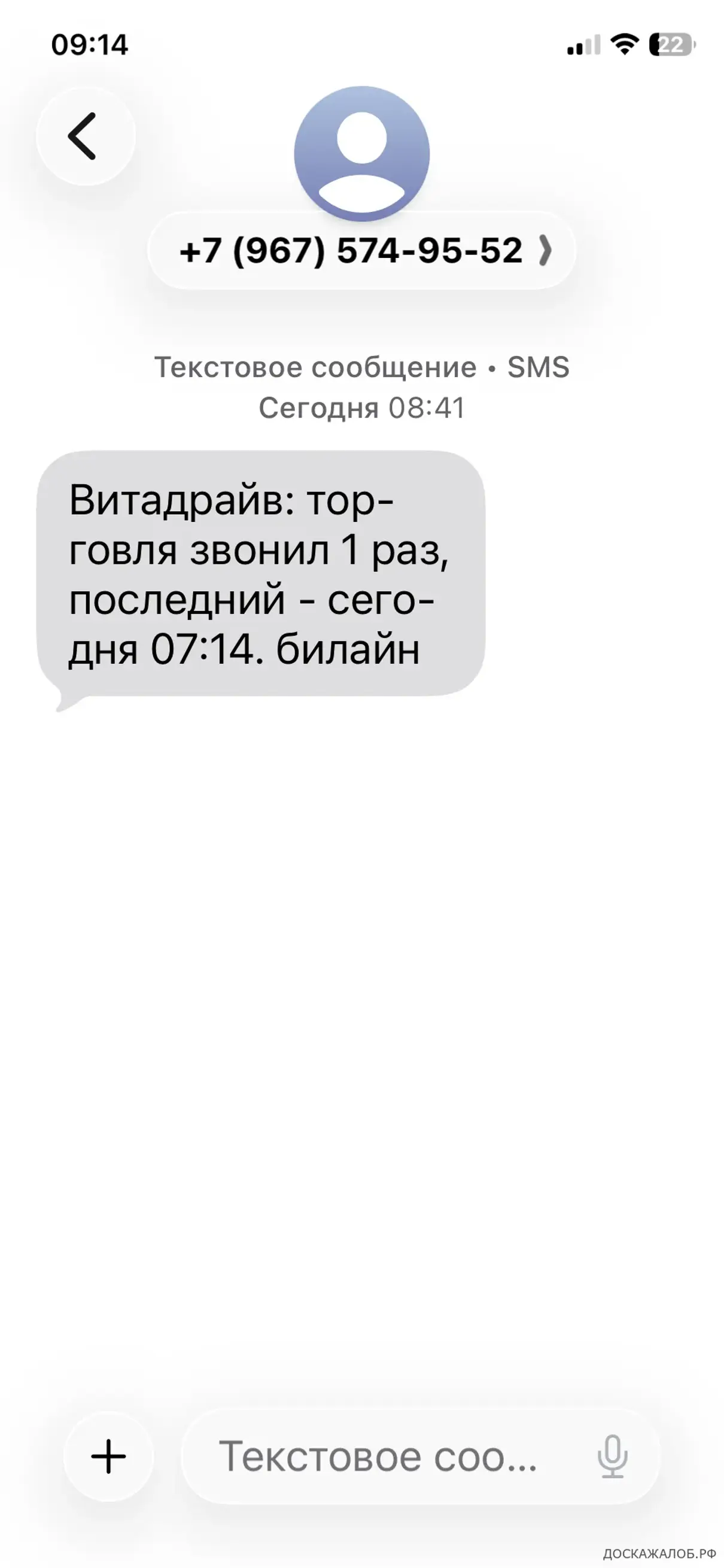 Витадрайв: торговля (так обозначены контактные данные при звонке) - звонит без остановки с различных номеров, видимо - автоматизировано, ничего не говорят, сразу же сбрасывают и сразу же - новый звонок, и так - без остановки.