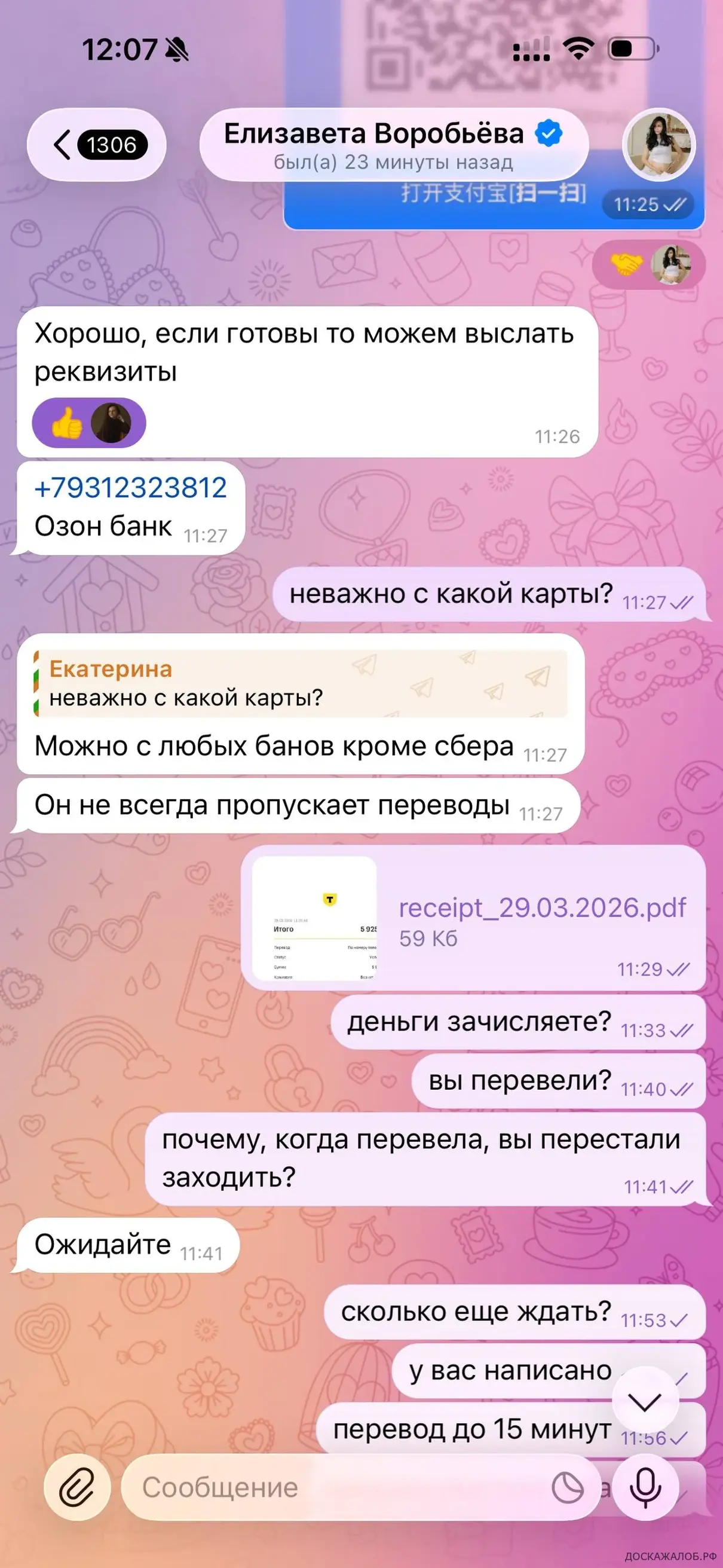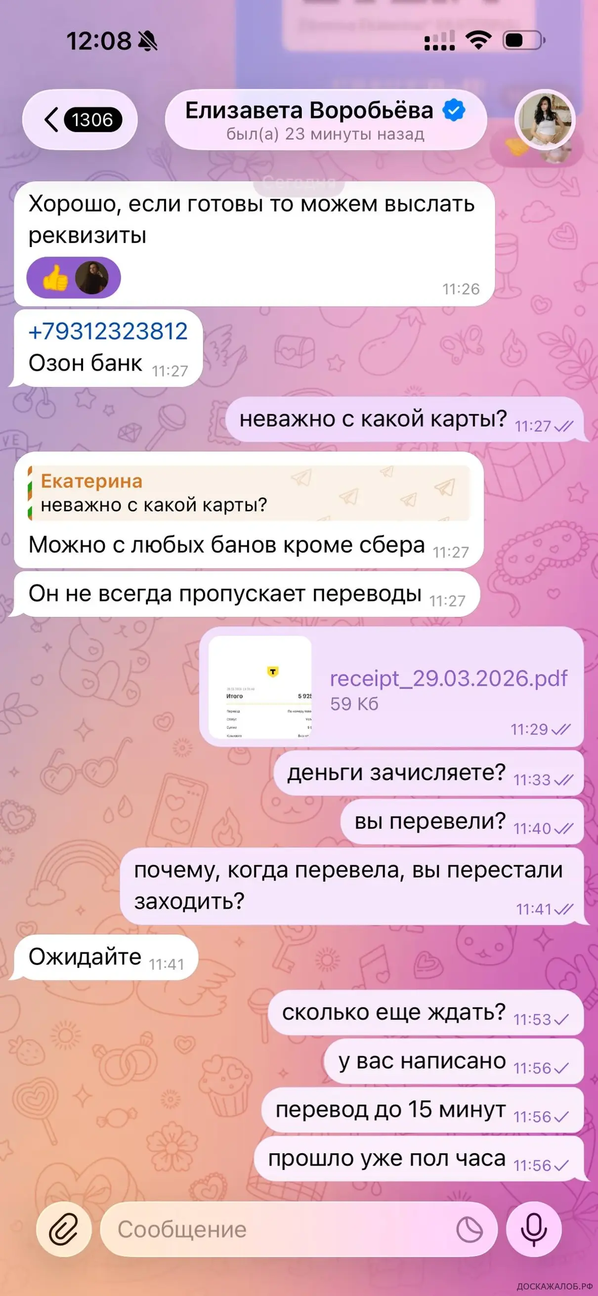 Воробьева"), который сообщил условия для обмена и реквизиты для перевода денежных